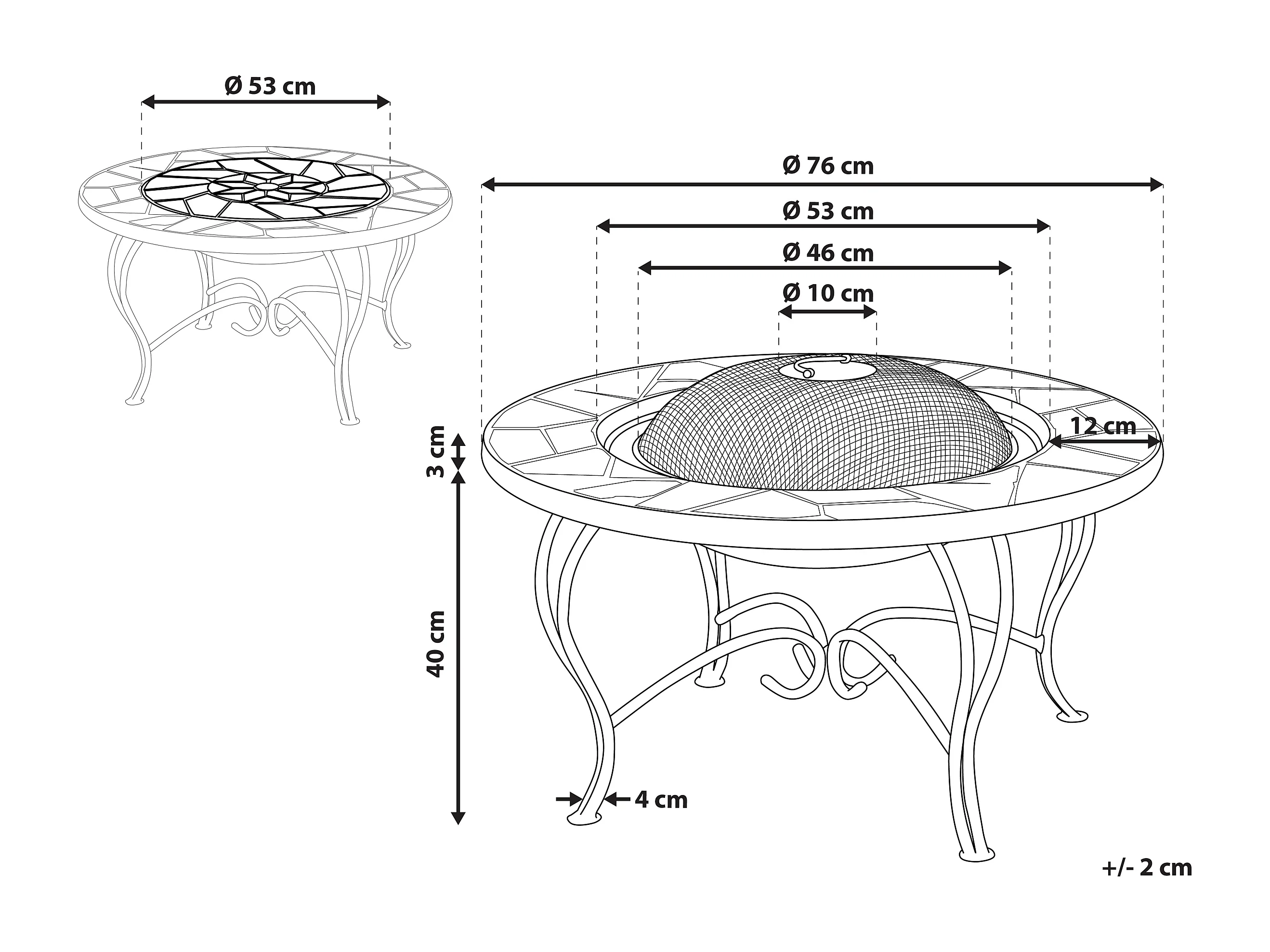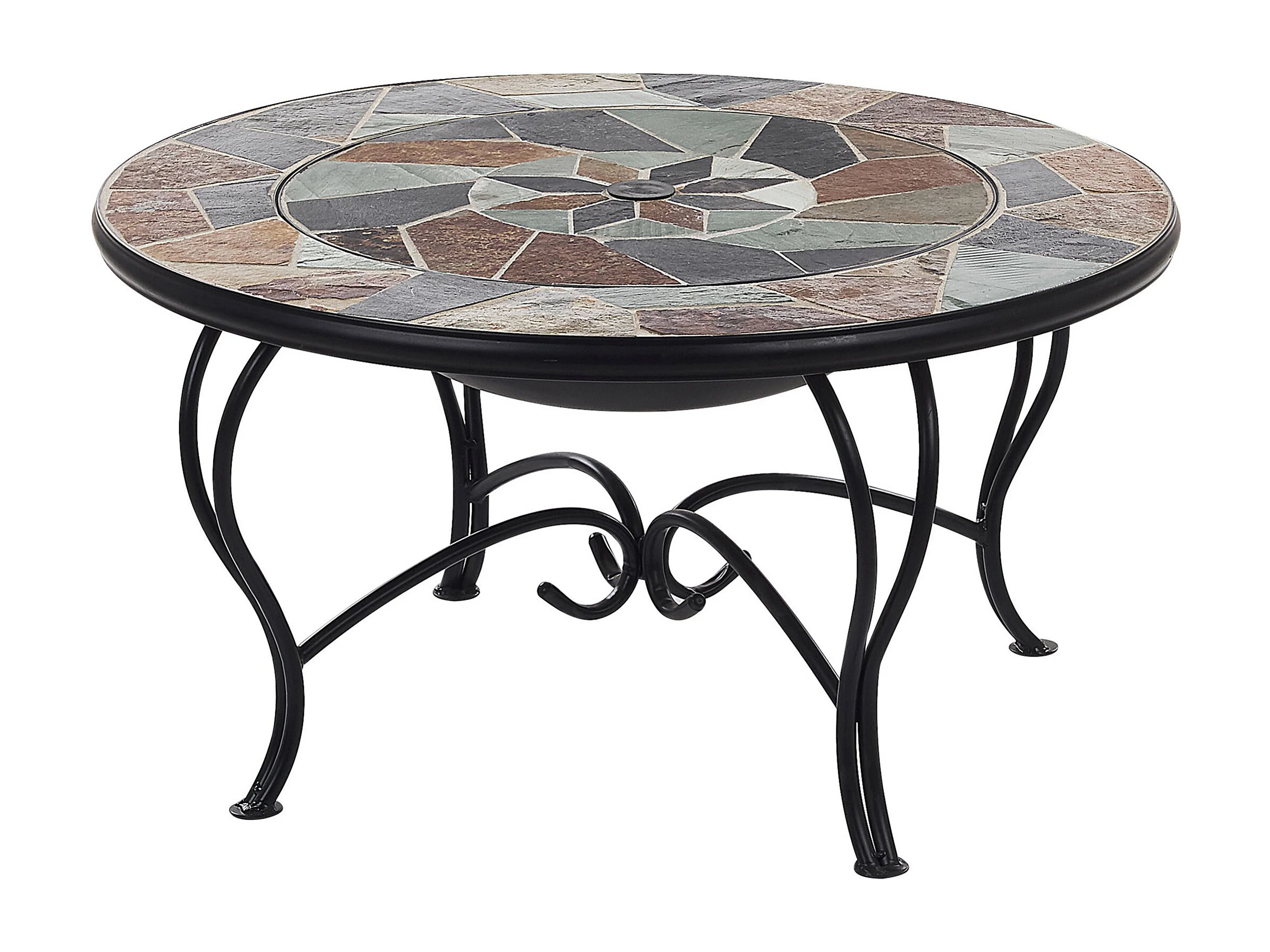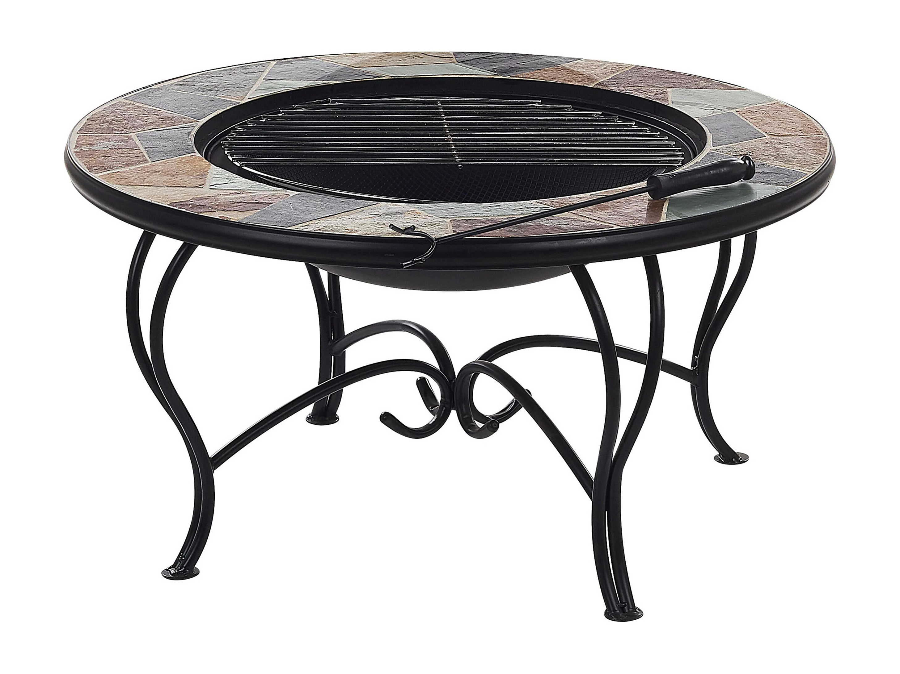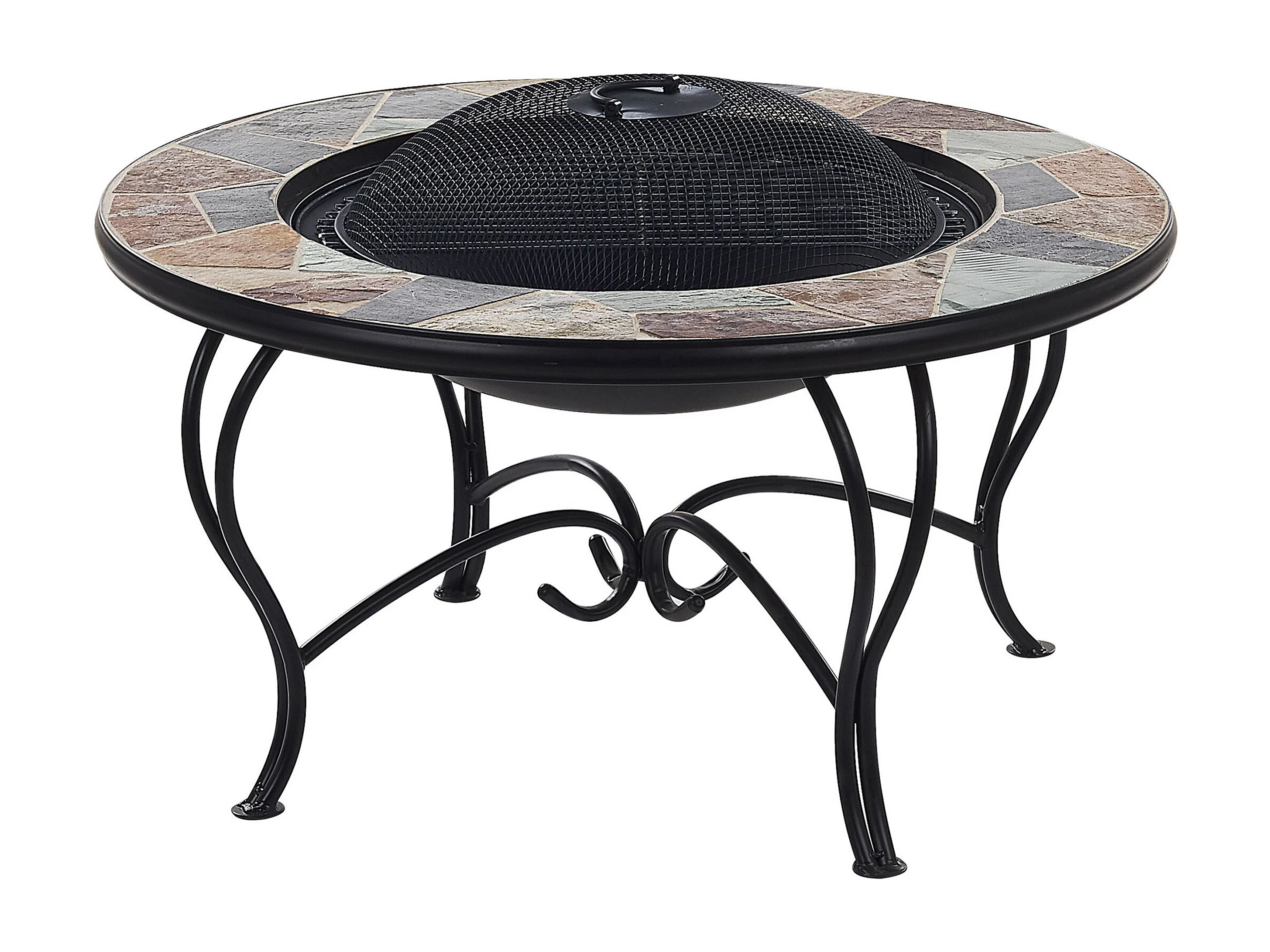 Moderne, runde Garten Feuerstelle mit bunten Schiefer-Fliesen Stahlgestell Erebus