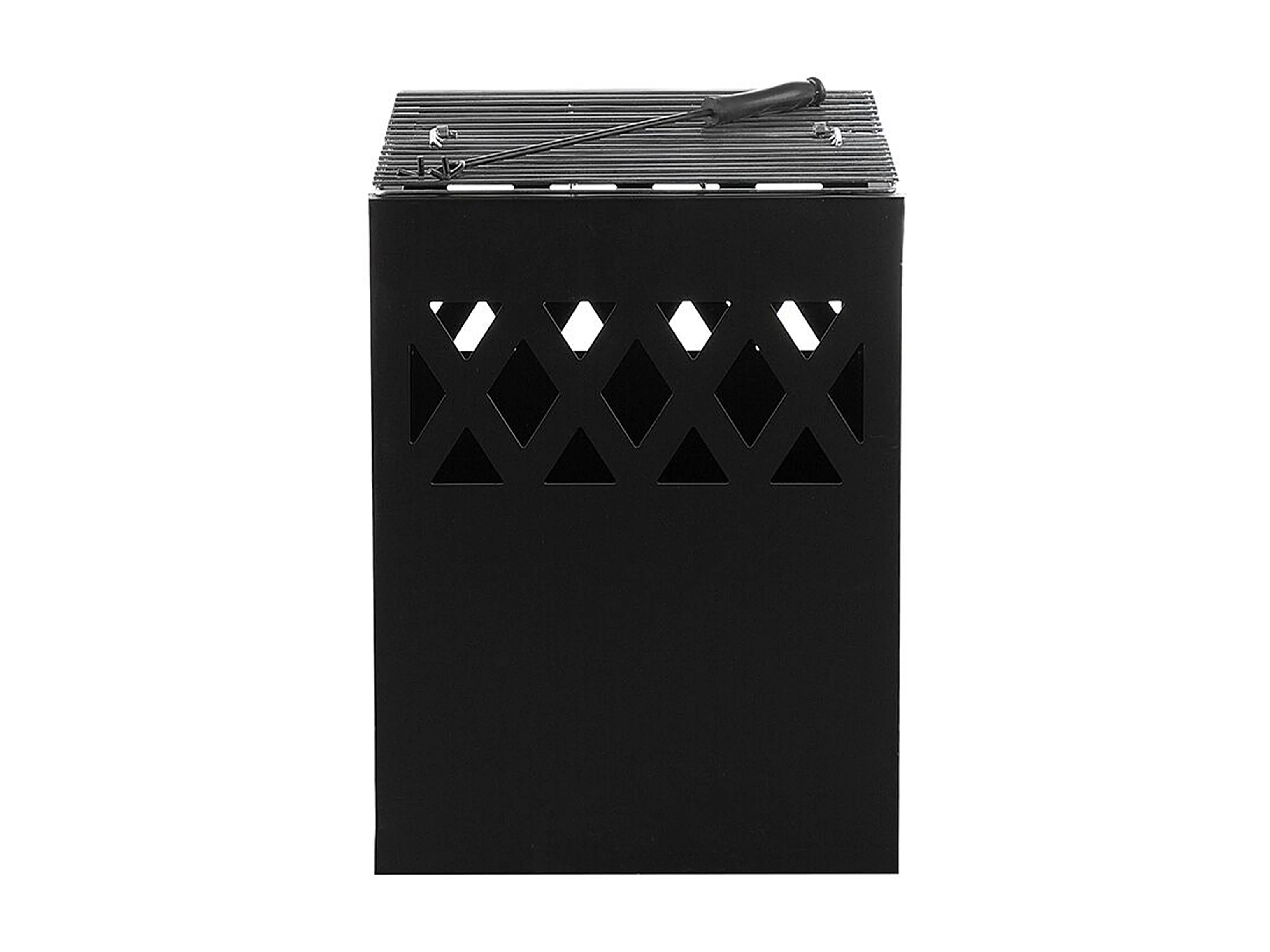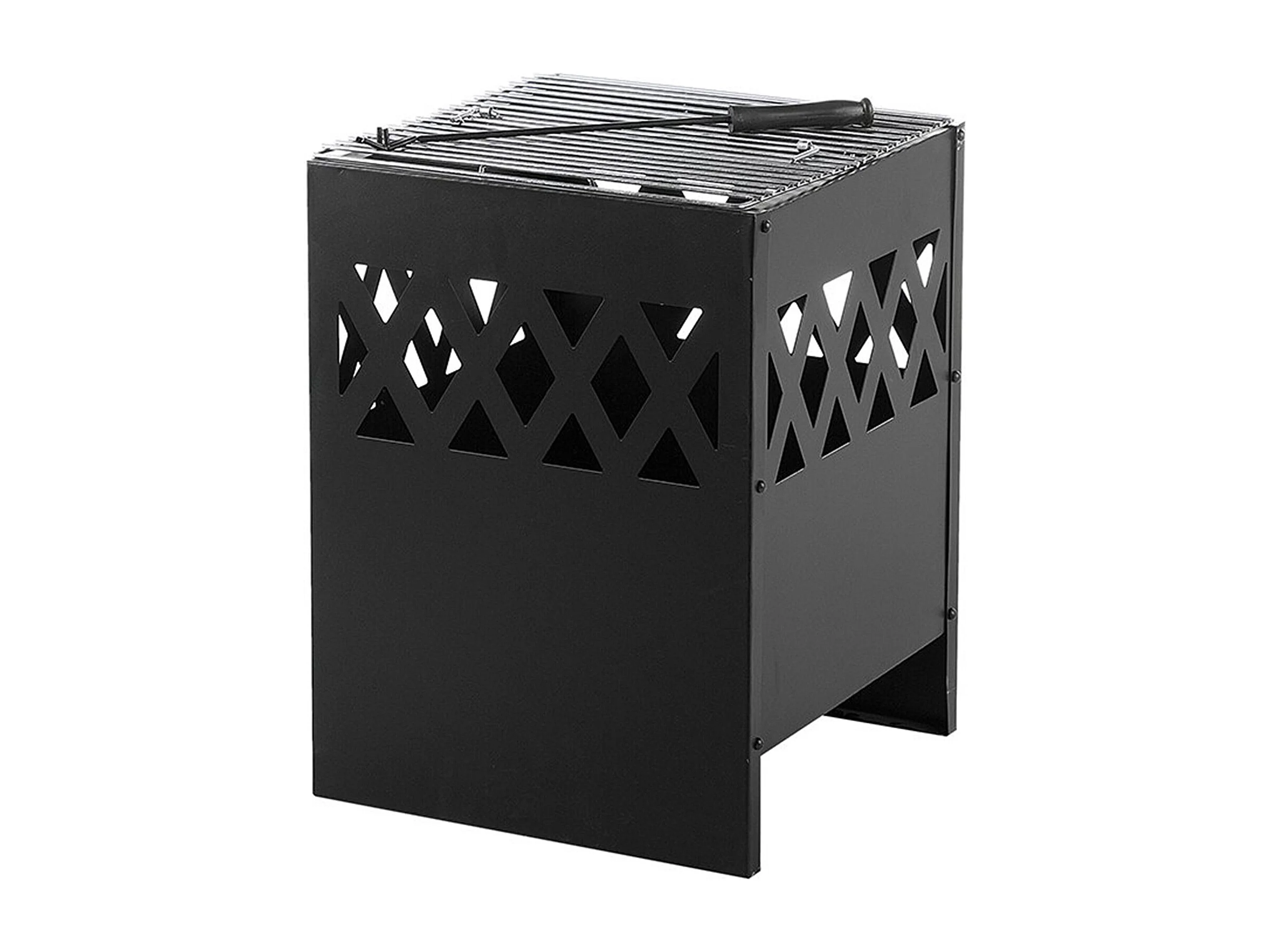 Feuerstelle aus Metall schwarz mit Grillrost quadratisch Gartengrill Shiga