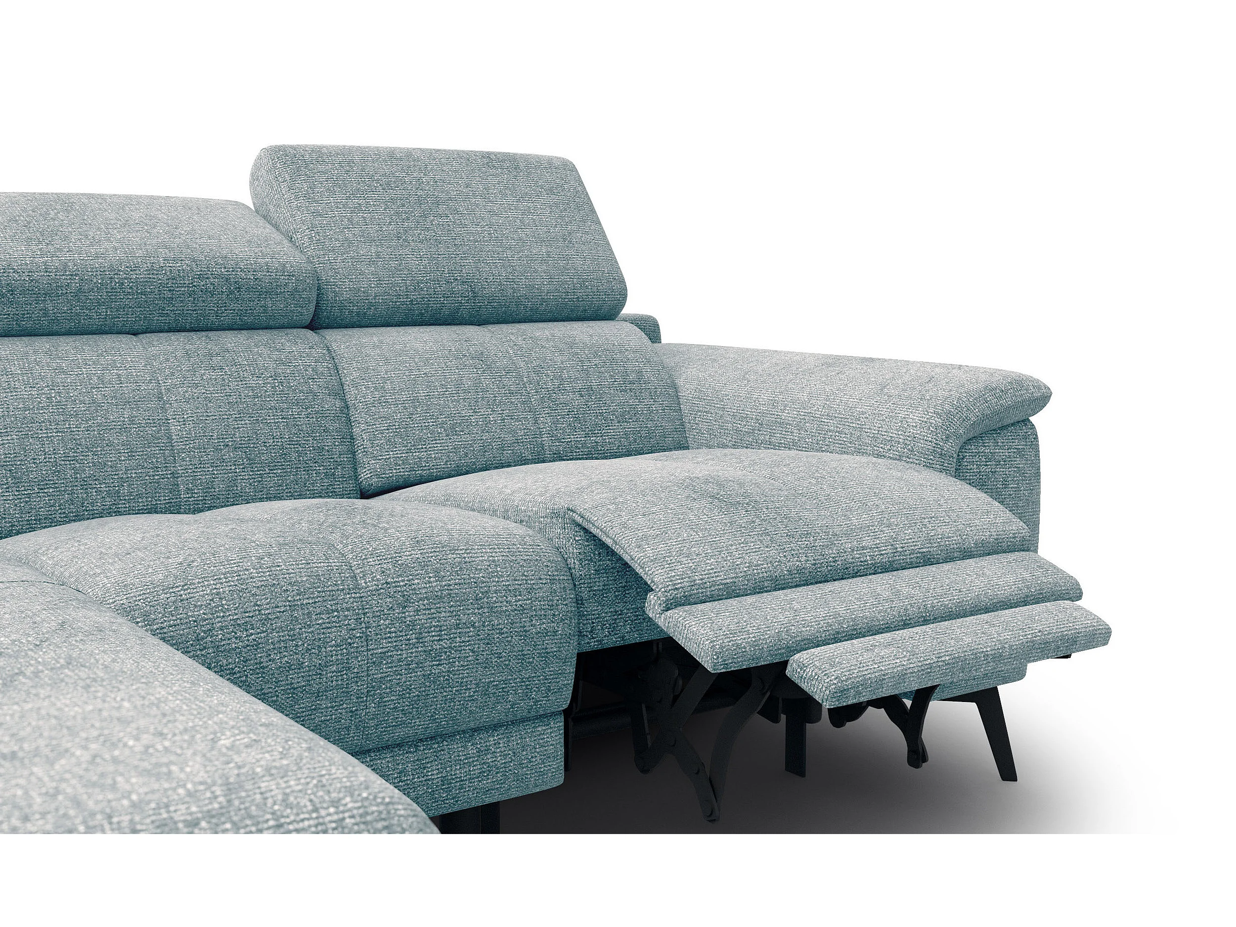 FIERO Ecksofa 3-Sitzer links mit 1 Relaxfunktion und verstellbare Kopfstützen, mint