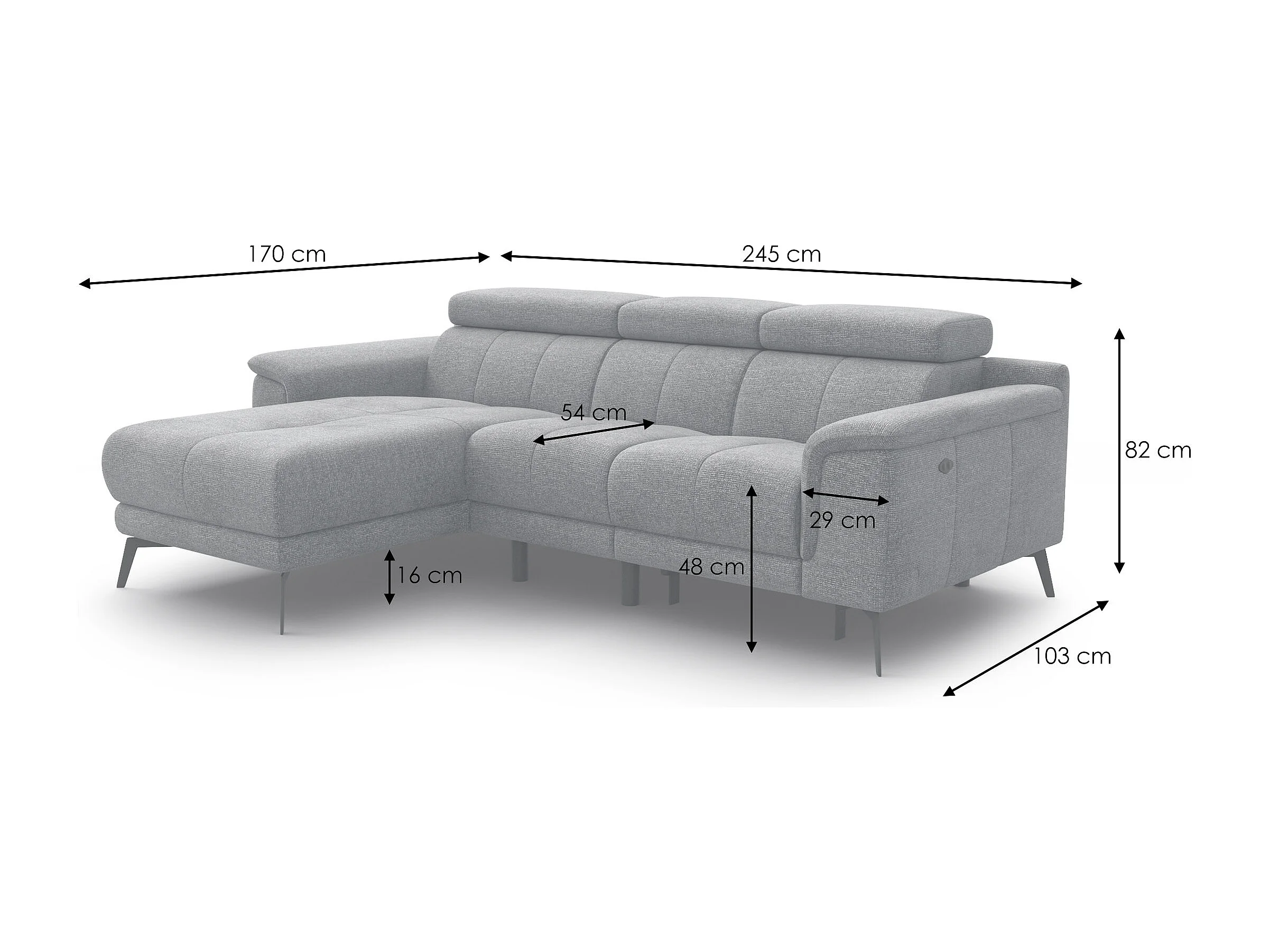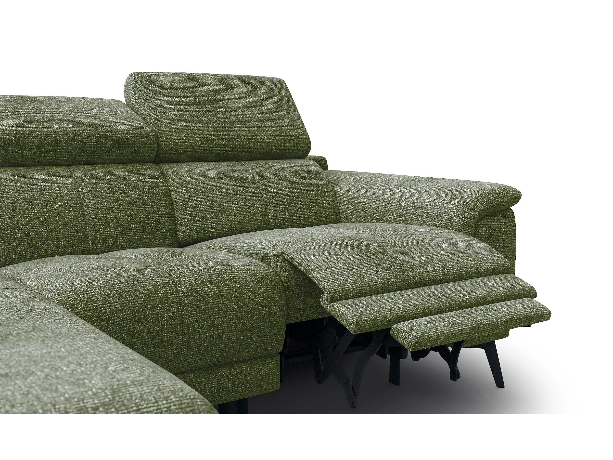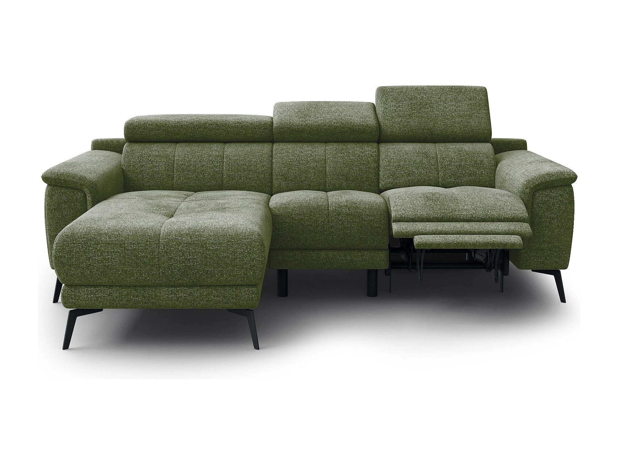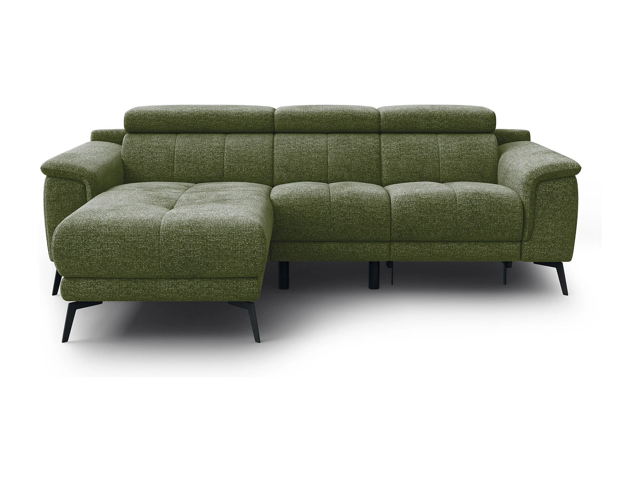 FIERO Ecksofa 3-Sitzer links mit 1 Relaxfunktion und verstellbare Kopfstützen, olive