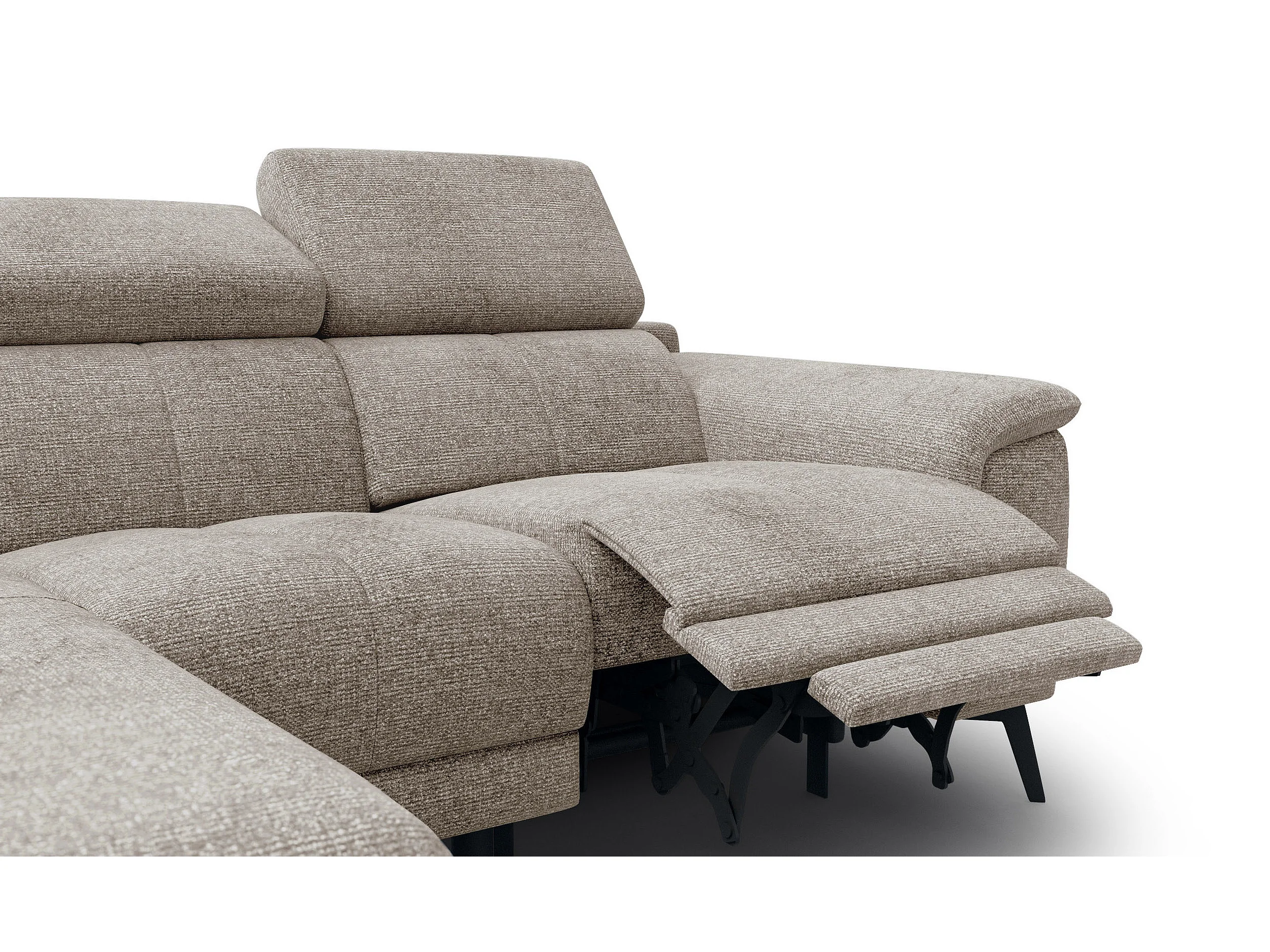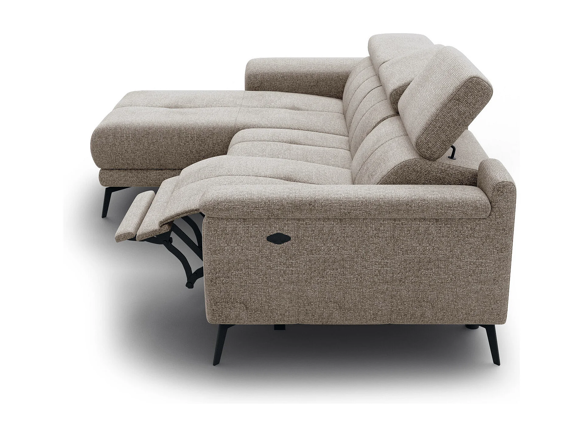 FIERO Ecksofa 3-Sitzer links mit 1 Relaxfunktion und verstellbare Kopfstützen, taupe