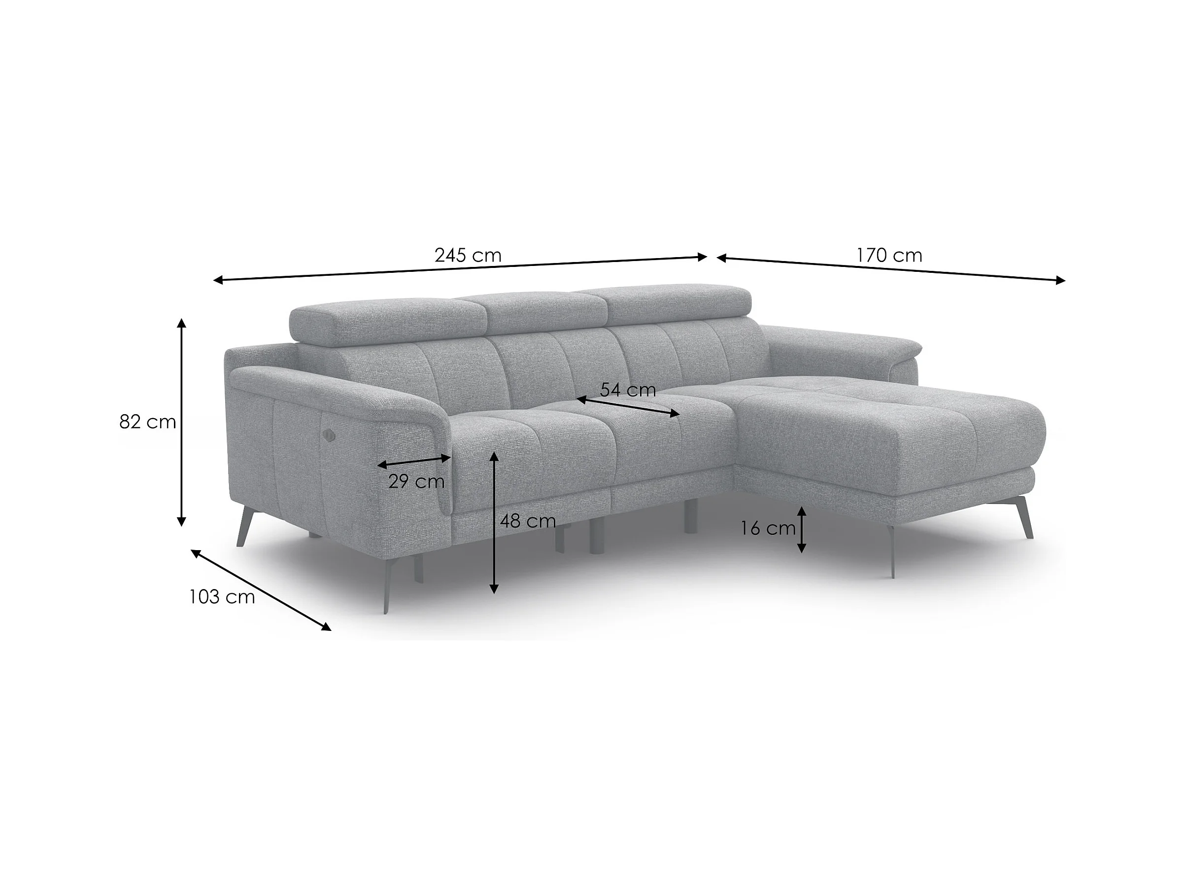FIERO Ecksofa 3-Sitzer rechts mit 1 Relaxfunktion, marineblau
