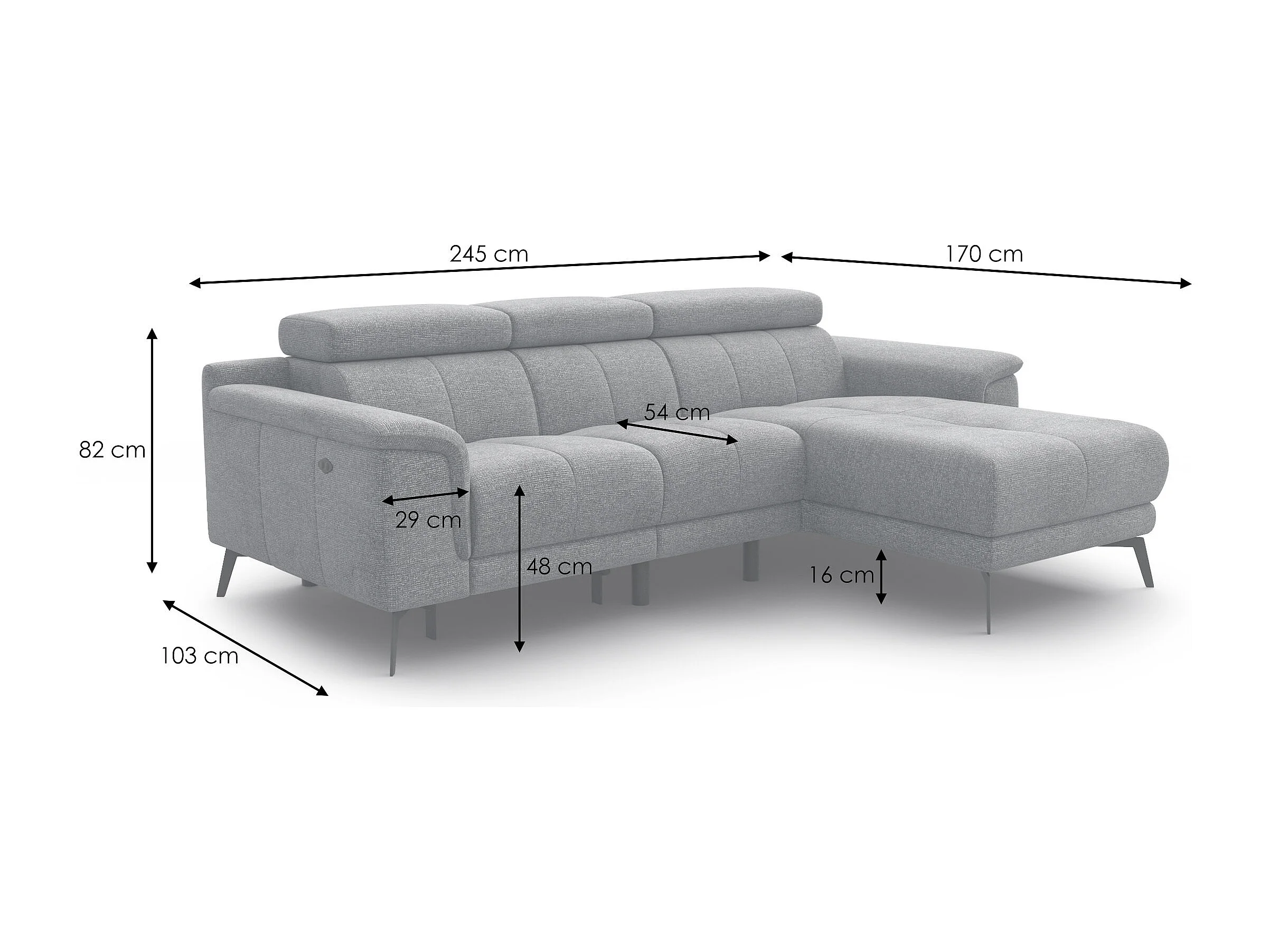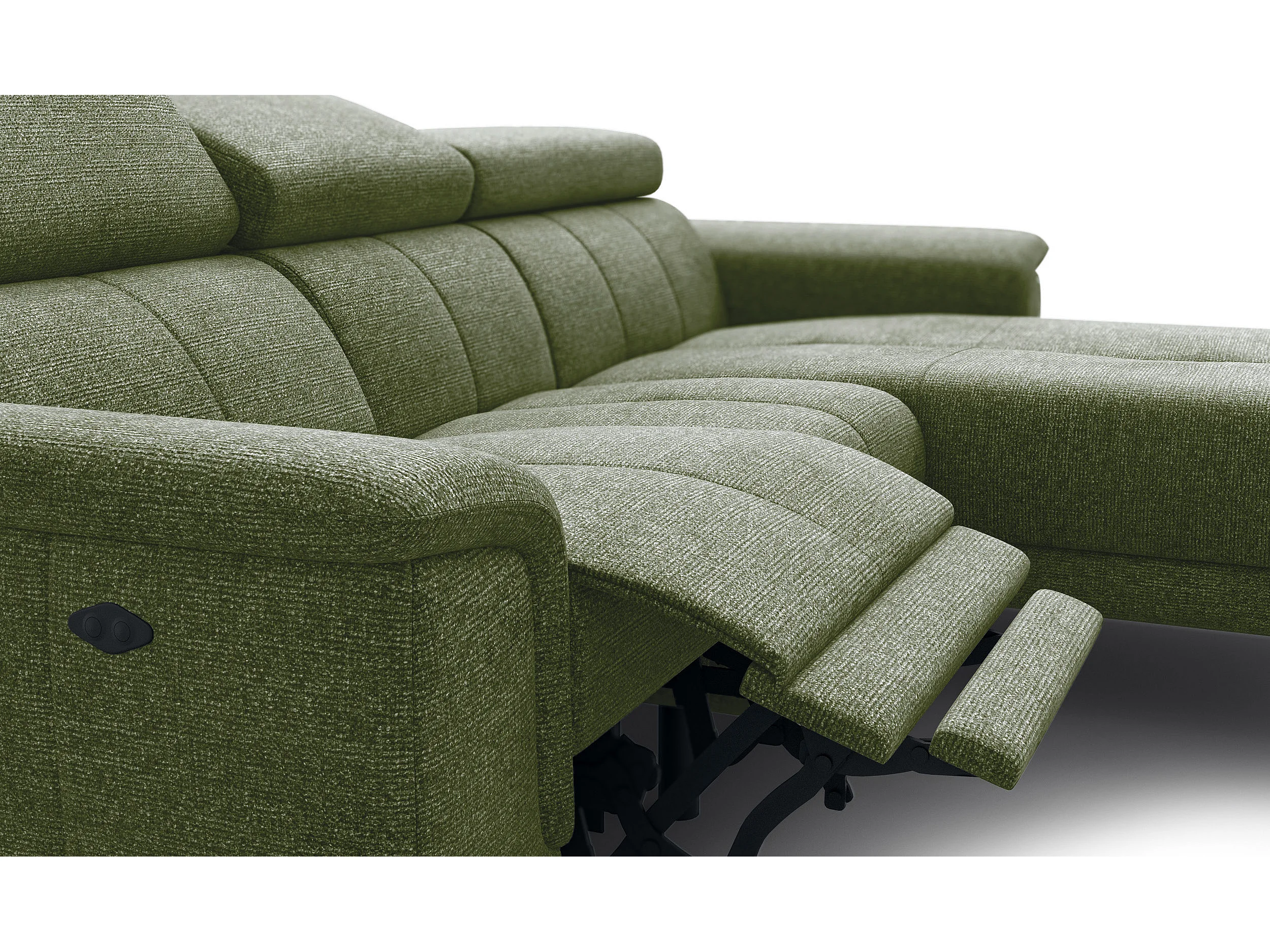 FIERO Ecksofa 3-Sitzer rechts mit 1 Relaxfunktion, olive