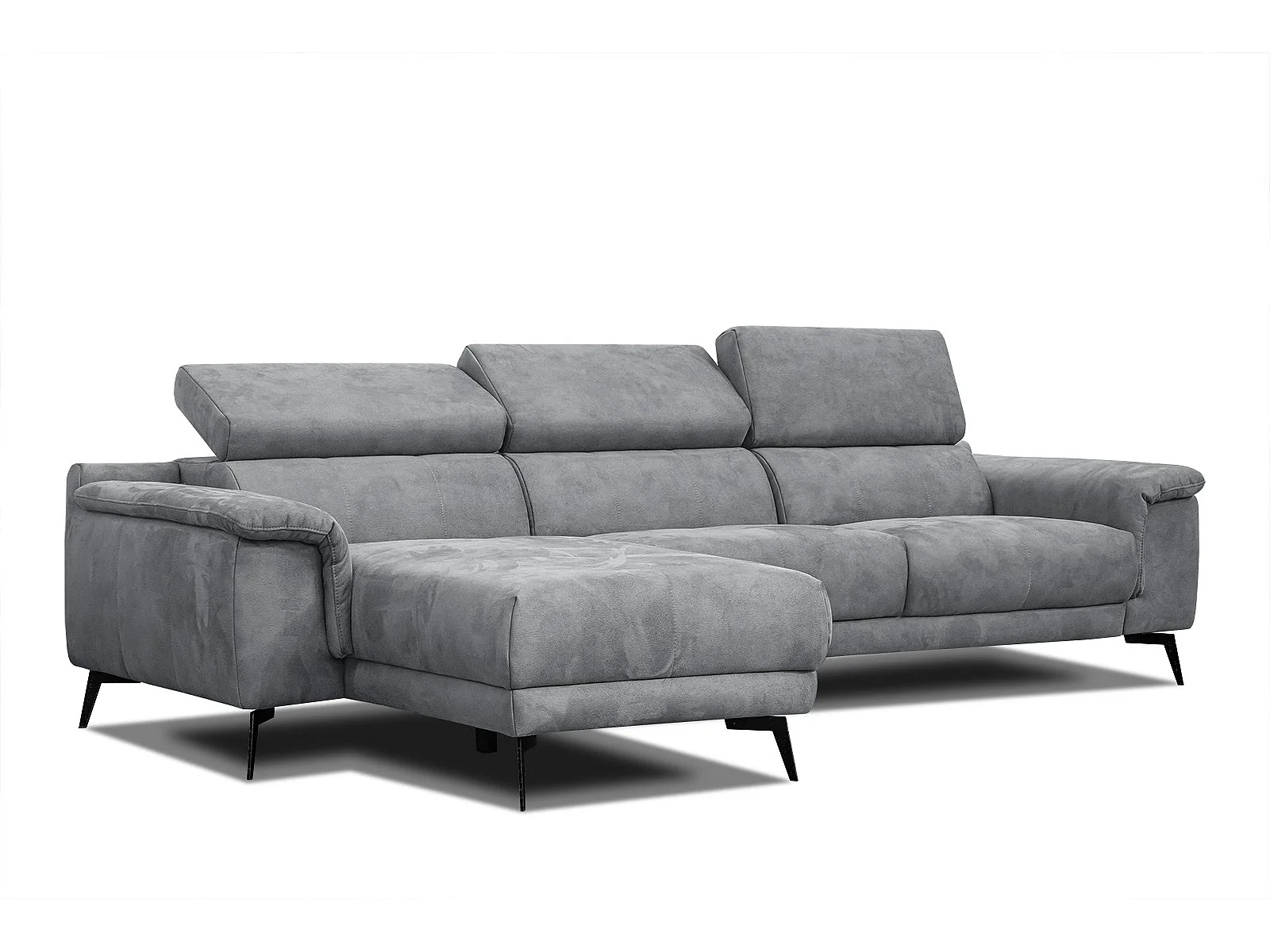 FIERO Ecksofa 4-Sitzer links mit verstellbare Kopfstützen, grau