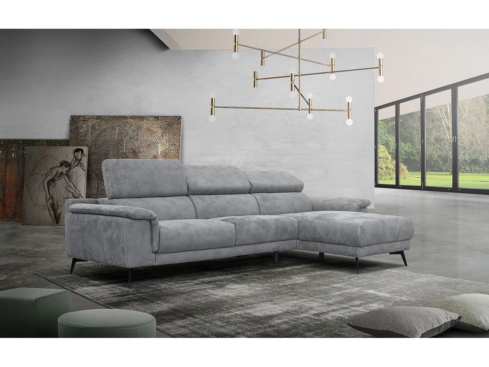 FIERO Ecksofa 4-Sitzer rechts mit verstellbare Kopfstützen, grau