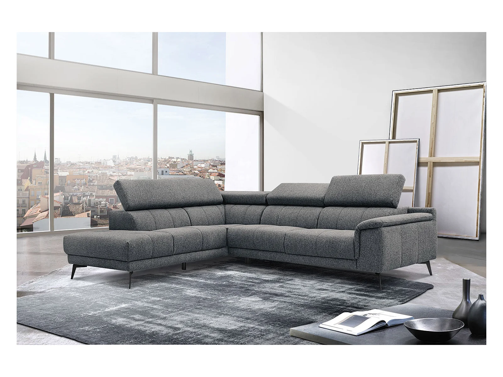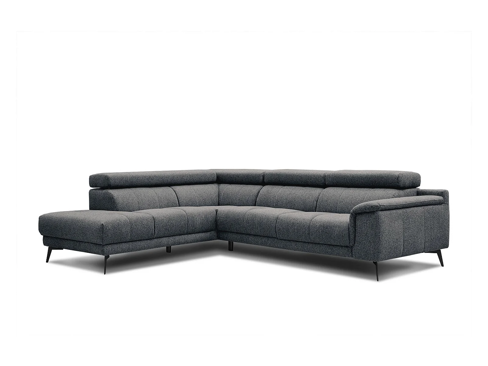 FIERO Ecksofa 5-Sitzer links mit verstellbare Kopfstützen, dunkelgrau