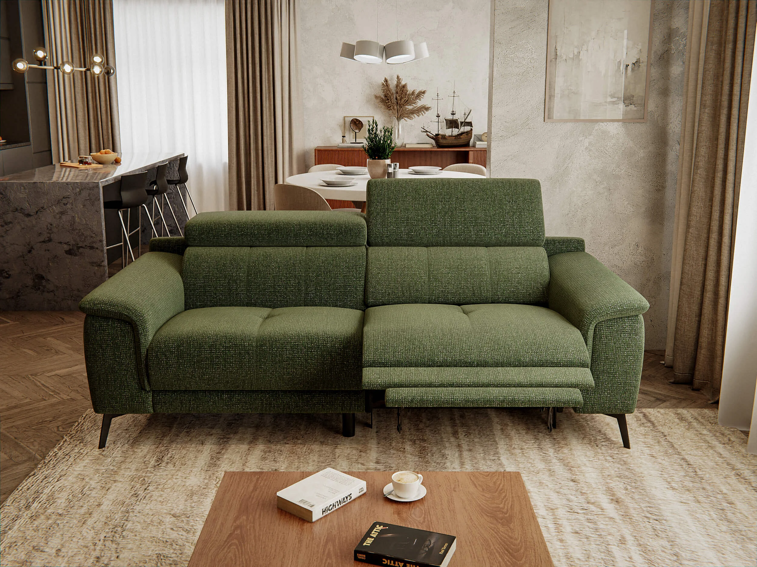 FIERO Sofa 3-Sitzer mit 1 Relaxfunktion und verstellbare Kopfstützen, olive