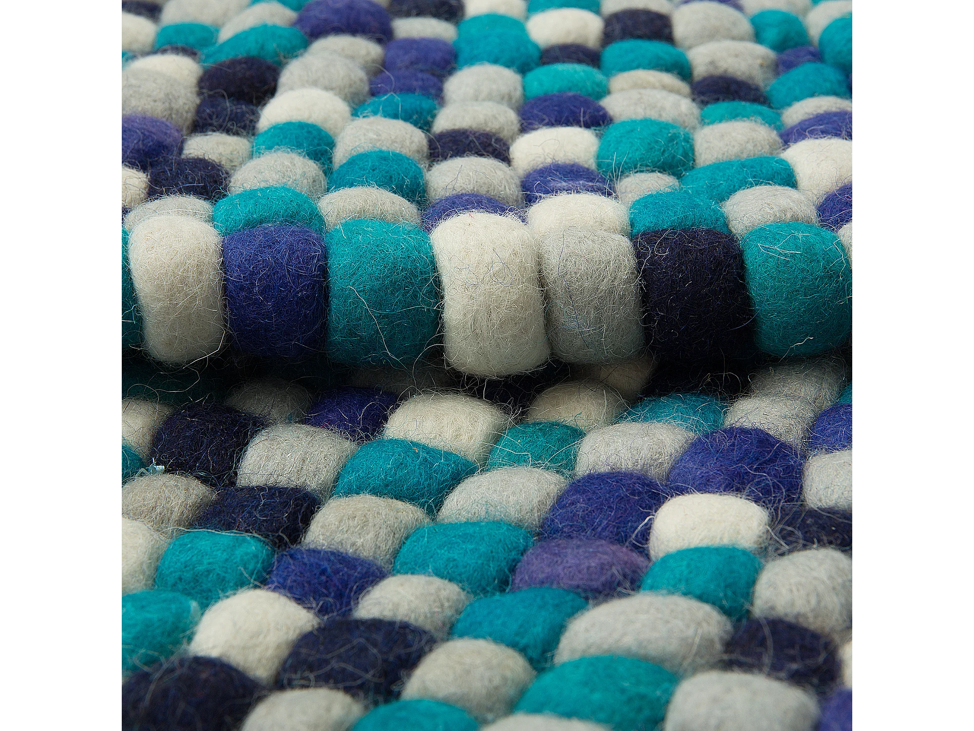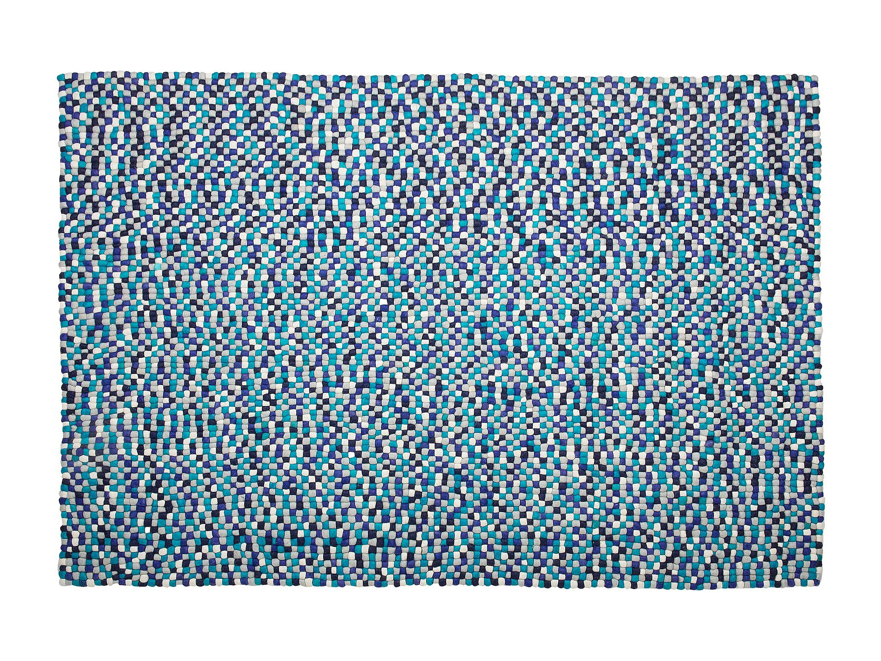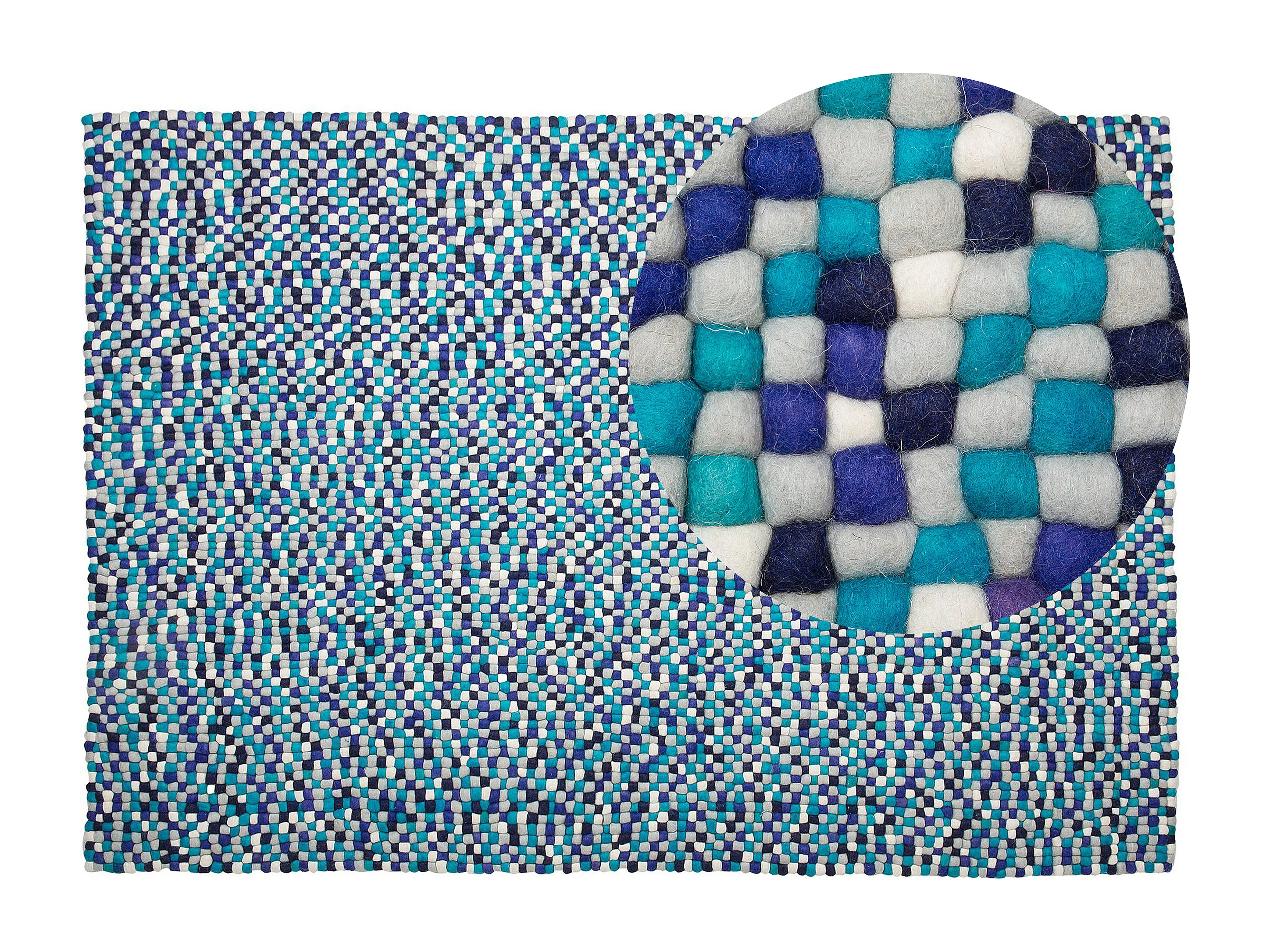 Teppich rechteckig Wollteppich Filzkugelteppich 160 x 230 cm Blau / Weiß Amdo