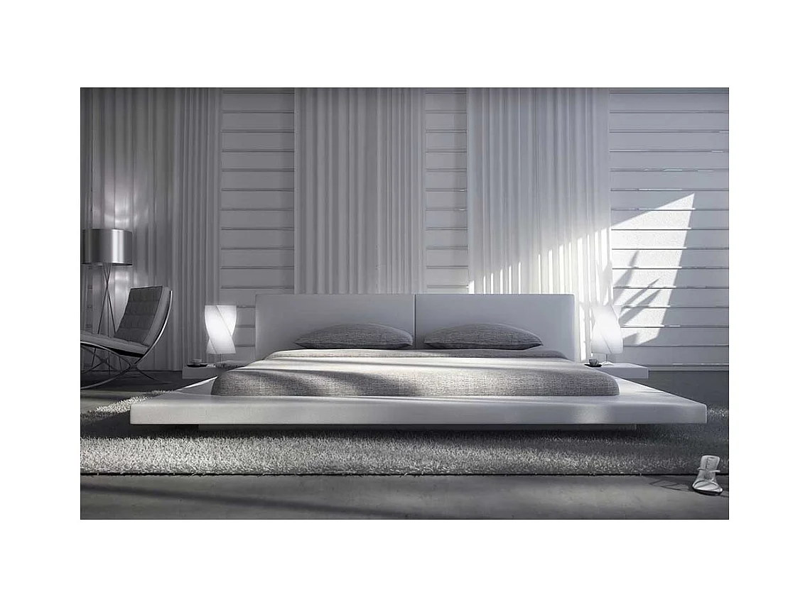 Flaches Bett in Weiß Kunstleder LED Beleuchtung
