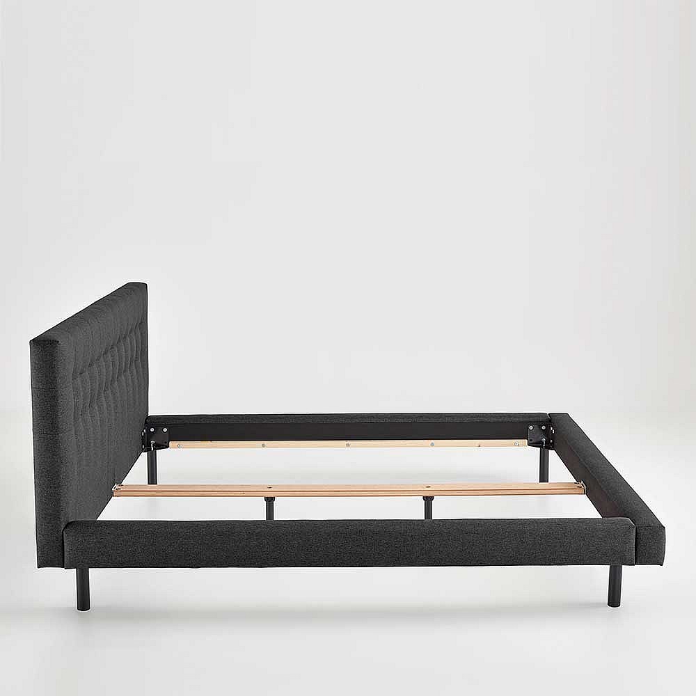 Flaches Bettgestell mit Polster in Dunkelgrau 140x200 cm