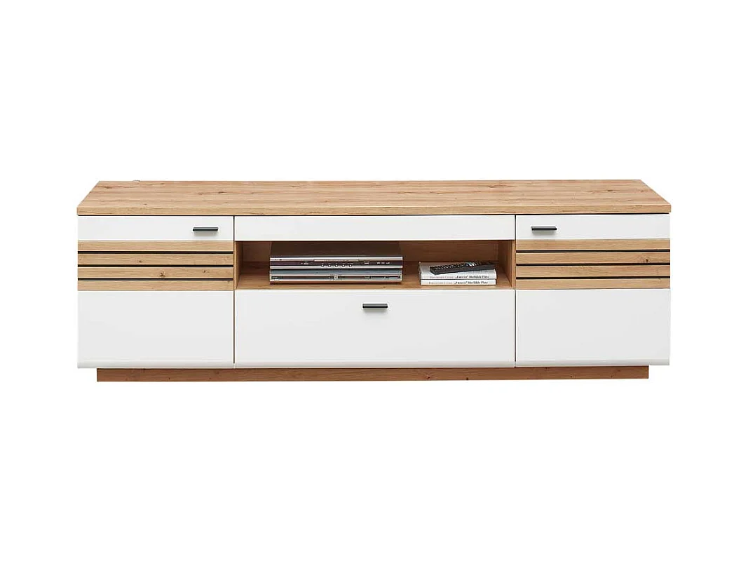 Flachstrecke Wohnzimmer in Weiß und Wildeichefarben einer Schublade