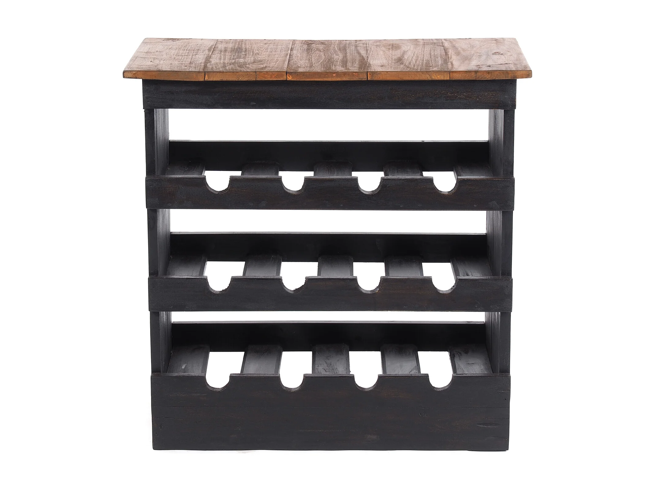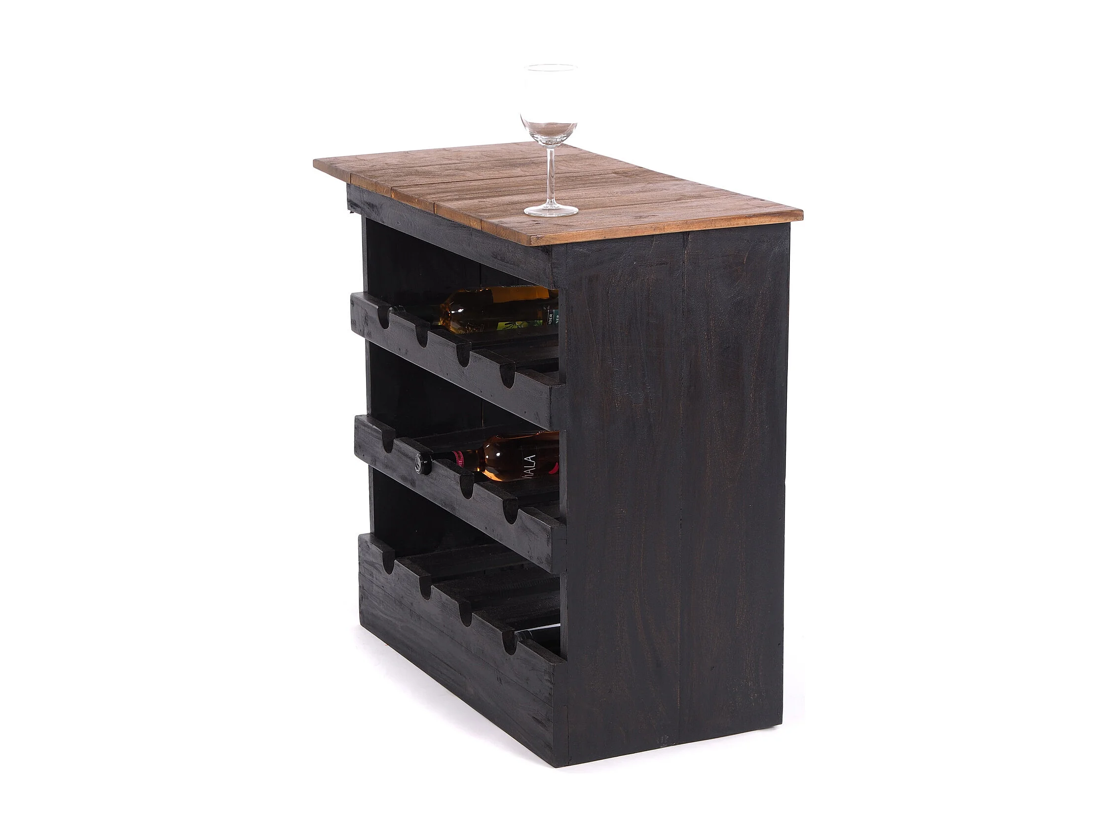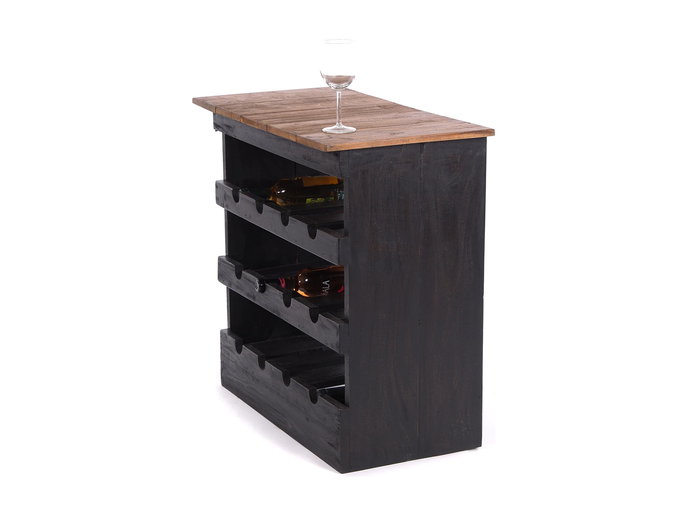 FLASCHENREGAL RUSTIQUE Recyclingholz massiv, für 12 Flaschen, mit Ablagefläche 04 schwarz-natur