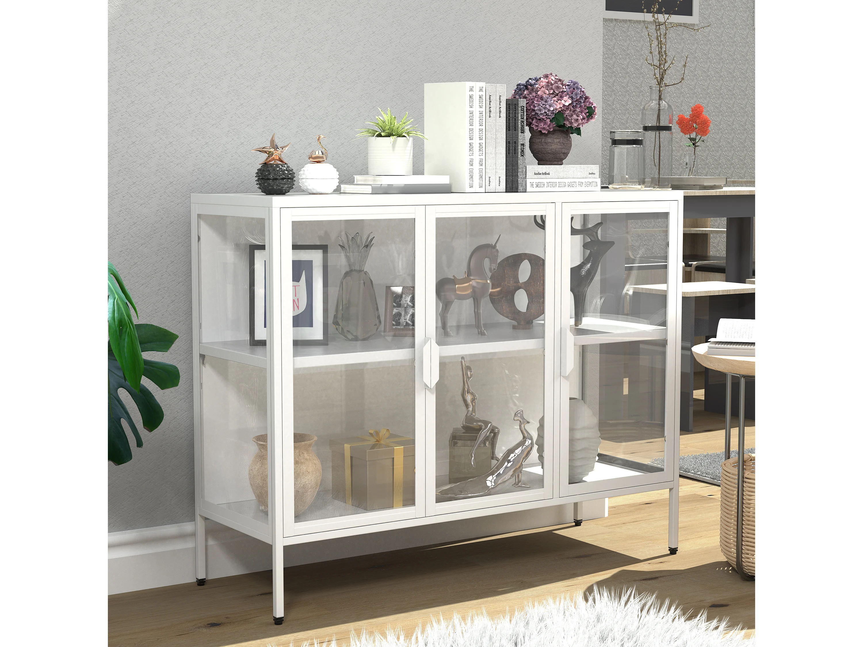Stahl Glas Vitrine Sideboard Kommode Floka L