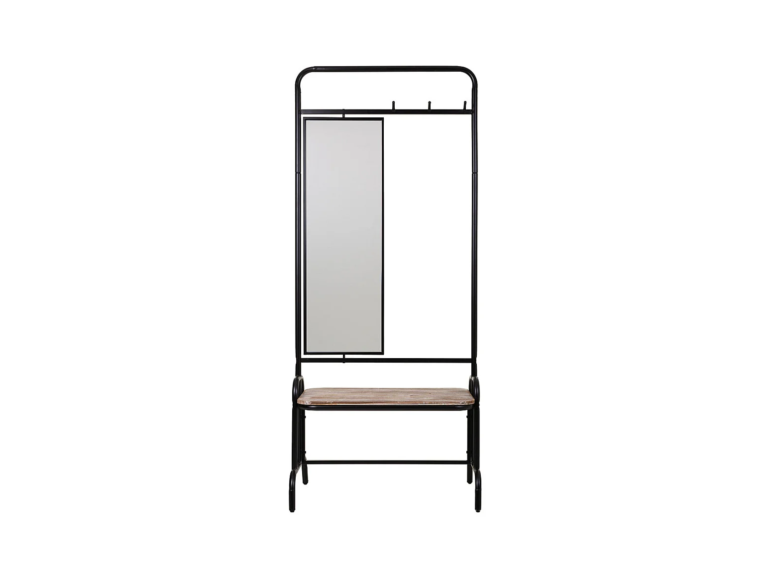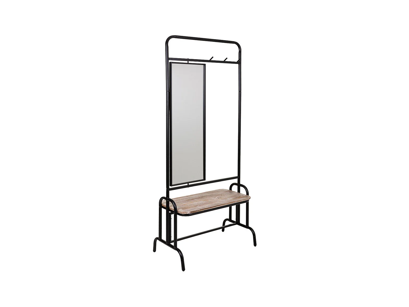 Flur mit Bank und Spiegel aus Metall und grauem Holz 77x45x181,5h cm