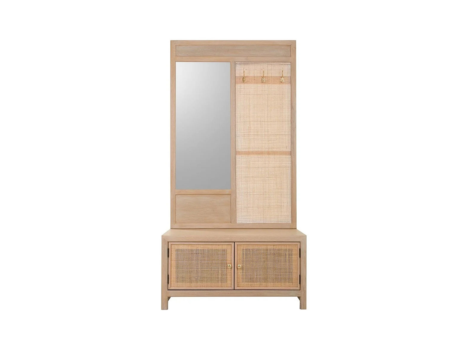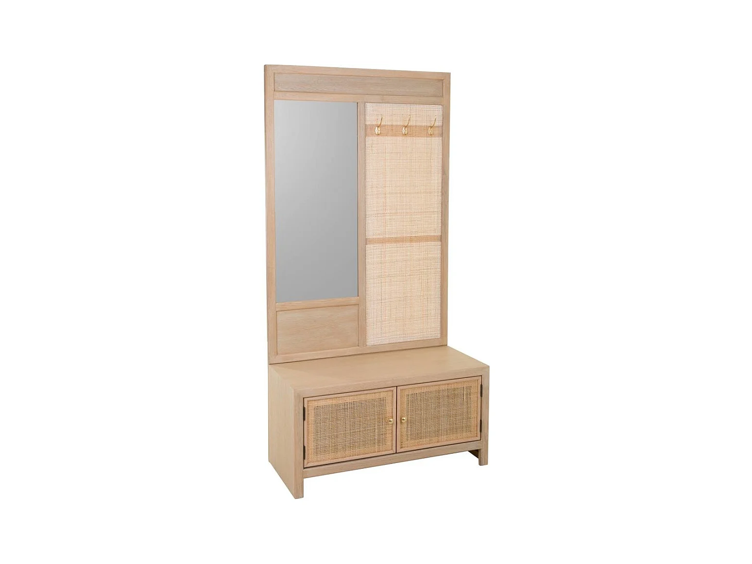 Flurbank aus Holz und braunem Netz 90x8x181h-90x39x46h cm