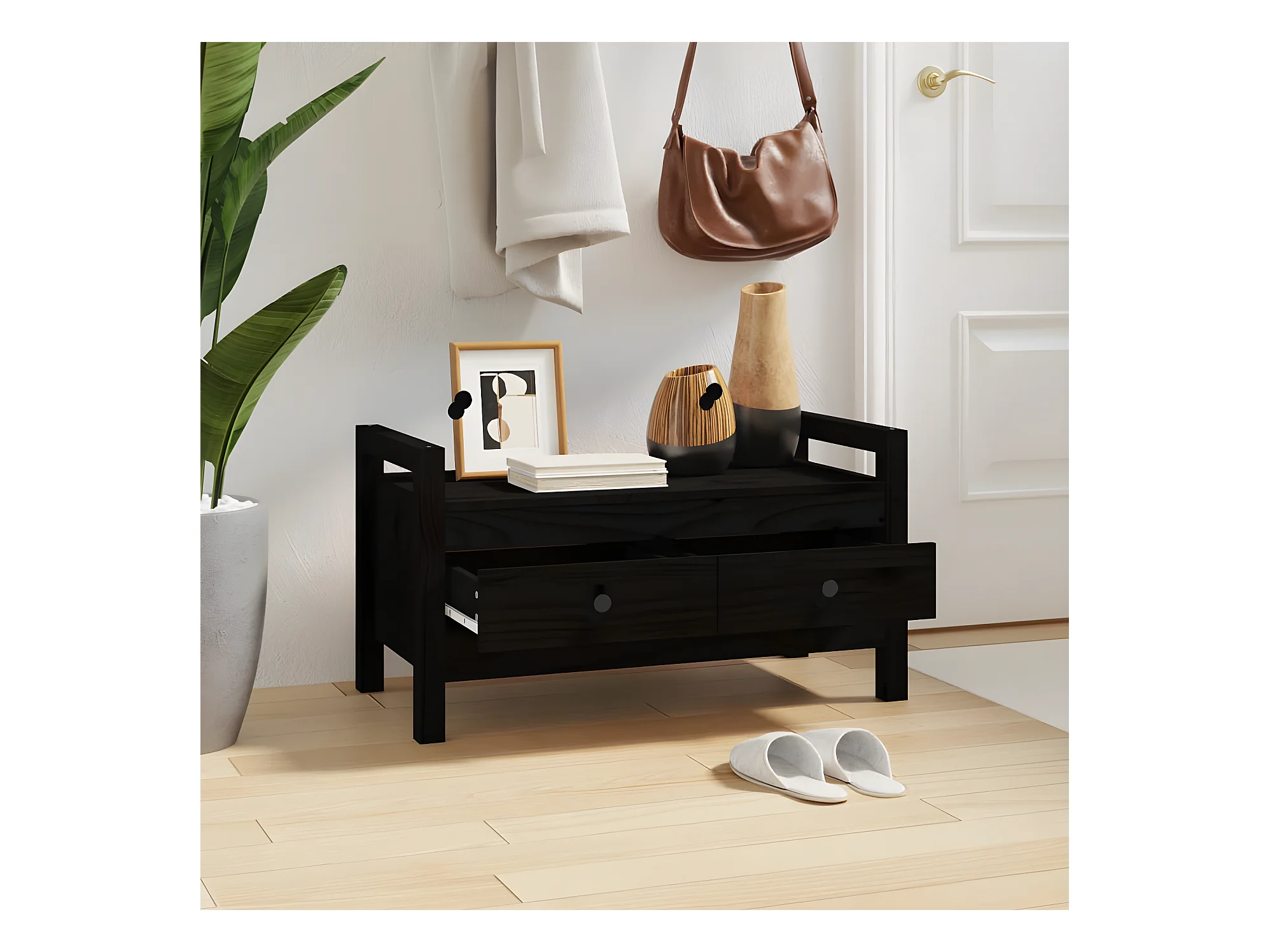 Flurbank Schwarz 80x40x43 cm Massivholz Kiefer