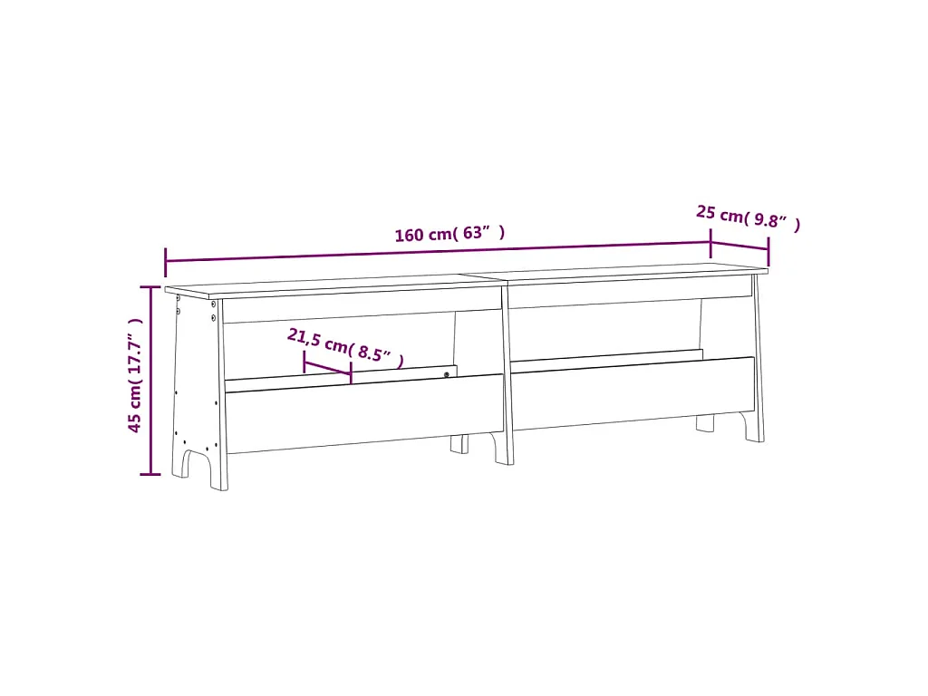 Flurbank Weiß 160x28x45 cm Massivholz Kiefer