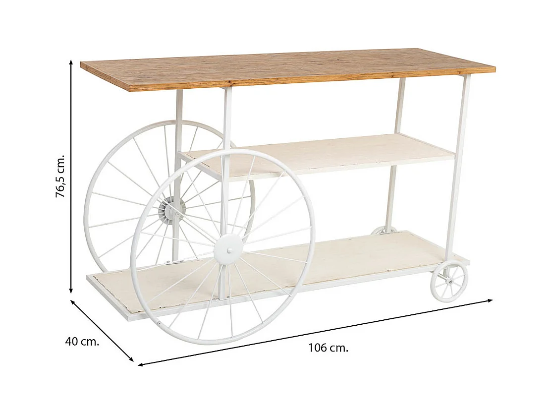 Eingangsmöbel aus Holz und Metall, weiß, 120x42x78h cm