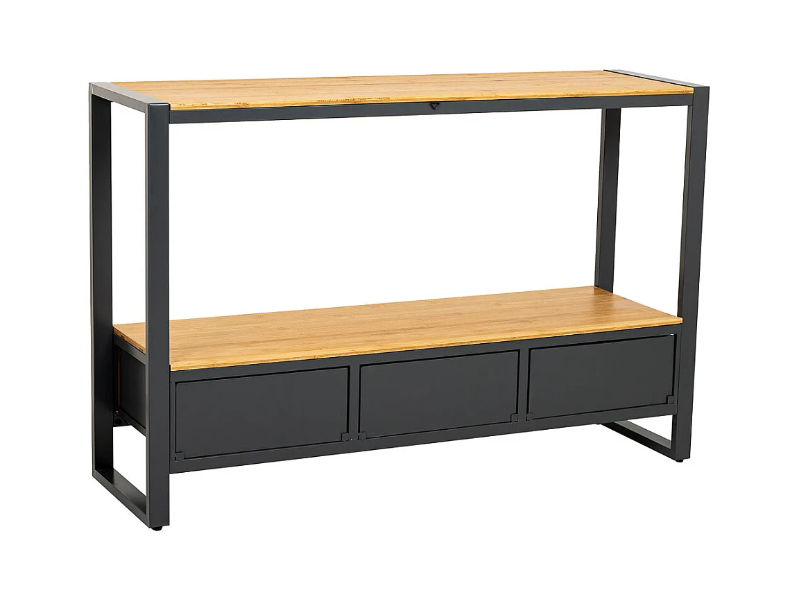 Flurmöbelset aus Metall und Holz, 3 Schubladen, braun 120x35x79,5h cm