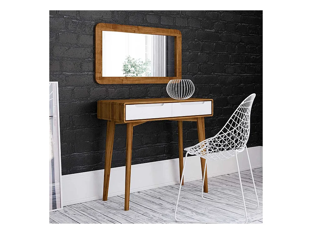 Flurtisch in Weiß und Wildeiche 90 cm breit