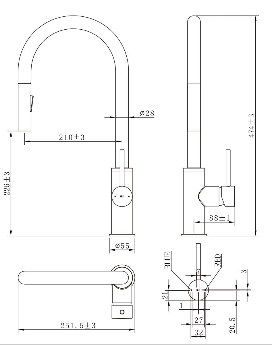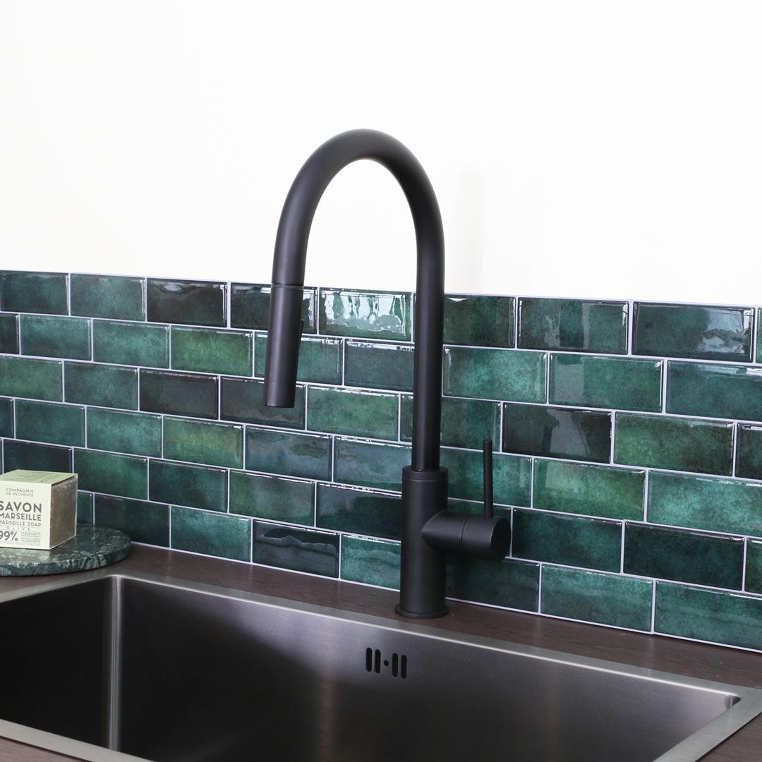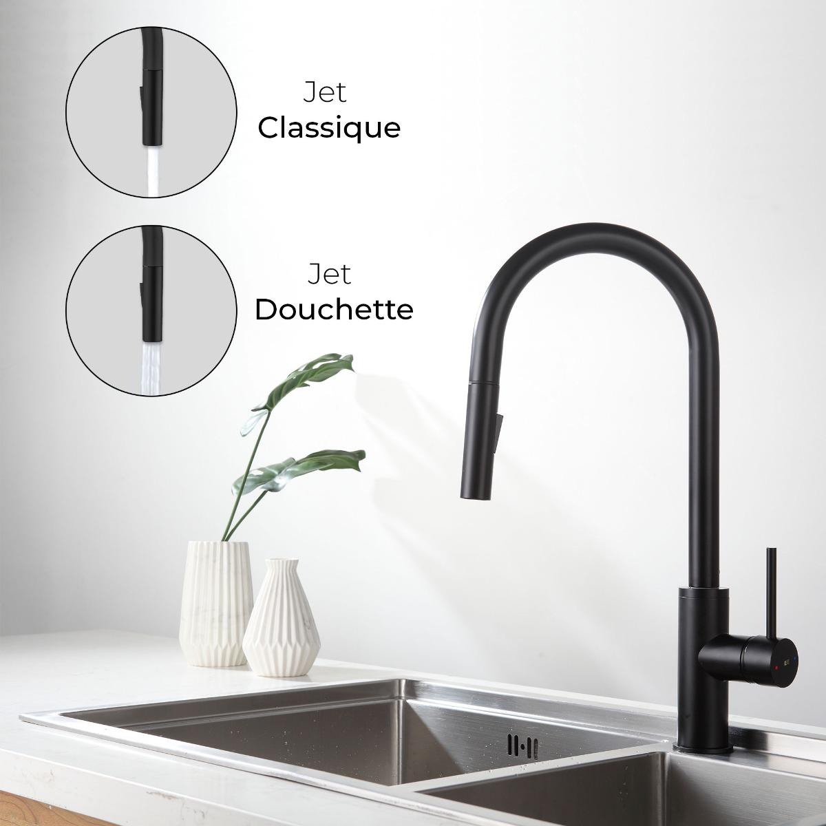 Foga Spültischmischer mit ausziehbarer Handbrause mattschwarz Essebagno