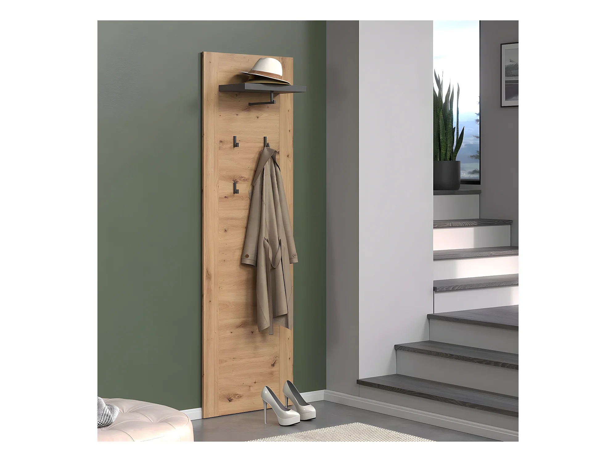 Follow Wandgarderobe grau, Eiche dekor.