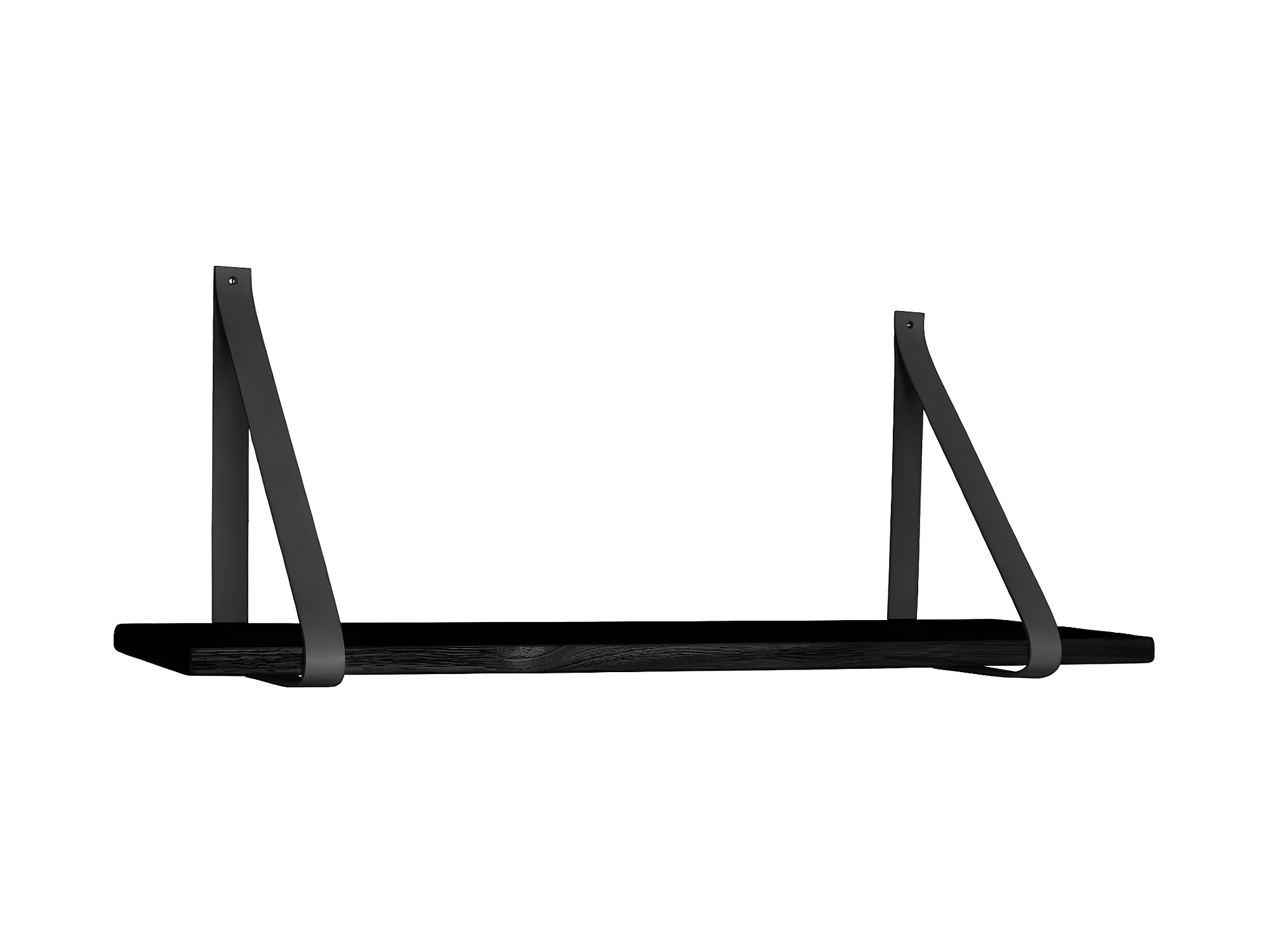 Foyle Wandregal 120x20 cm schwarz, Lederriemen schwarz.