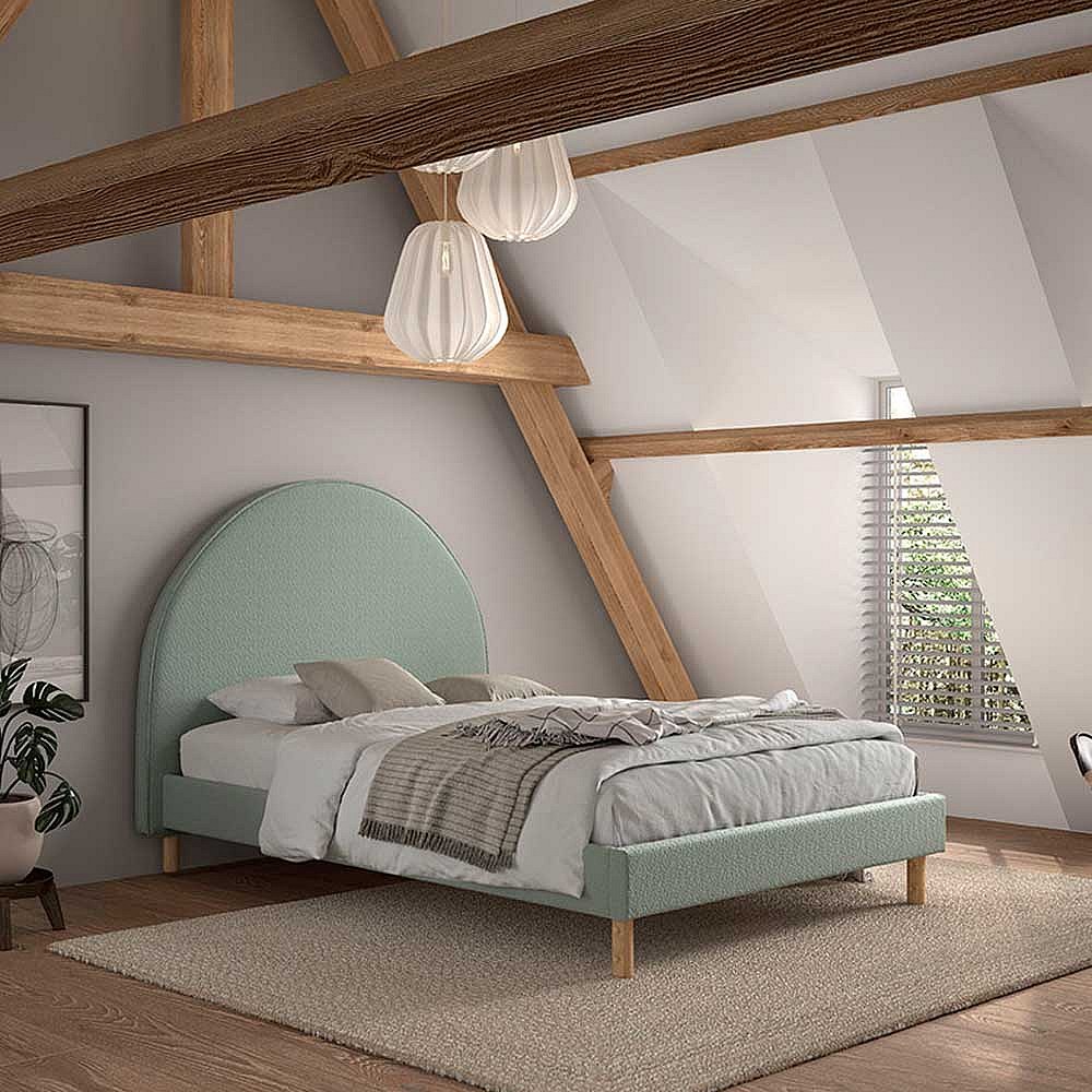 Franzoesisches Bett gr�n aus Boucle Stoff Skandi Design