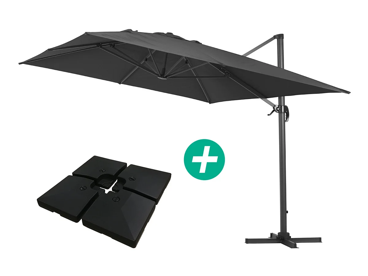 Ampelschirm aus Alu "Sun 4" - Rechteckig - 3 x 4 m - Schwarz - Platten zur Beschwerung inbegriffen
