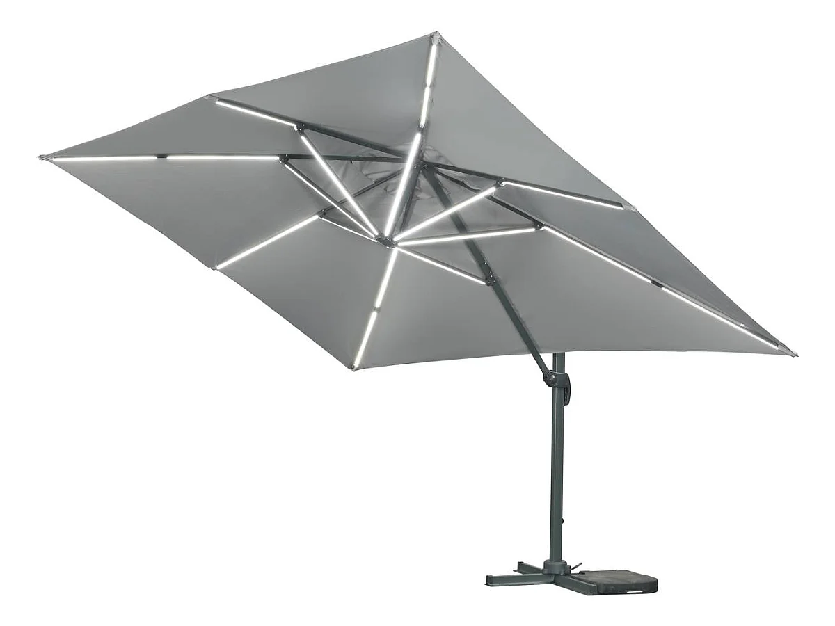 Ampelschirm aus Alu mit LED "Sun 3 Luxe", 3 x 3 m - Grau