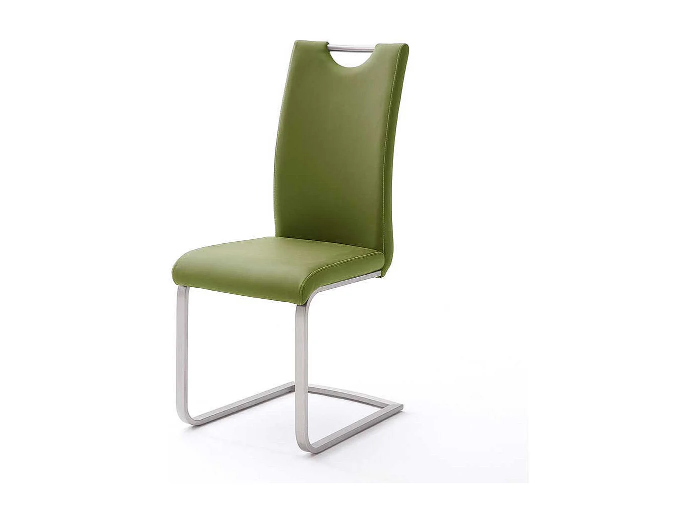 Freischwinger Set in Grün Kunstleder Edelstahl (4er Set)