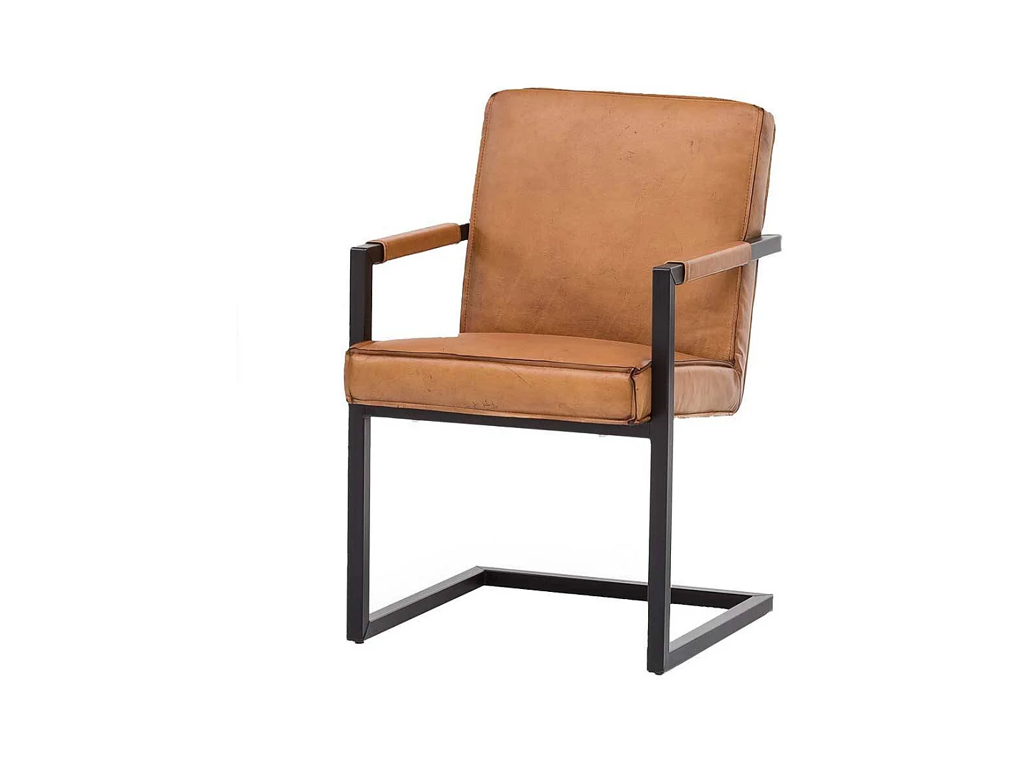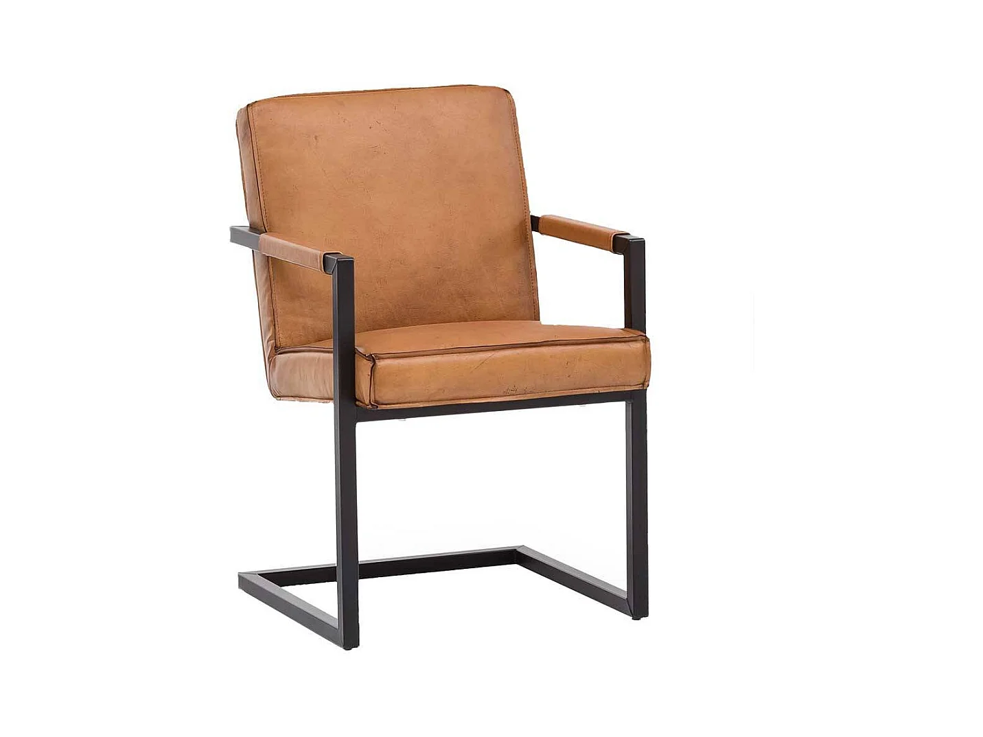 Freischwinger Stühle aus Echtleder und Metall Armlehnen (2er Set)