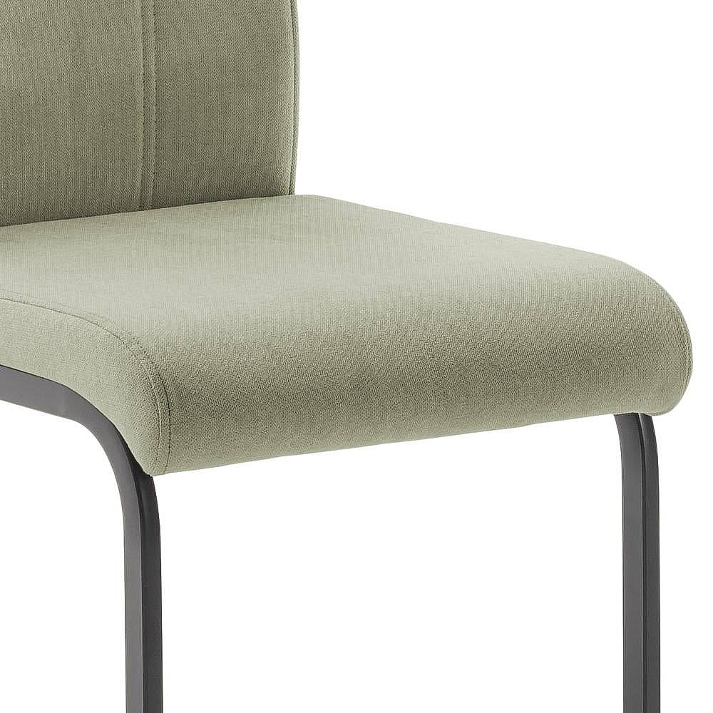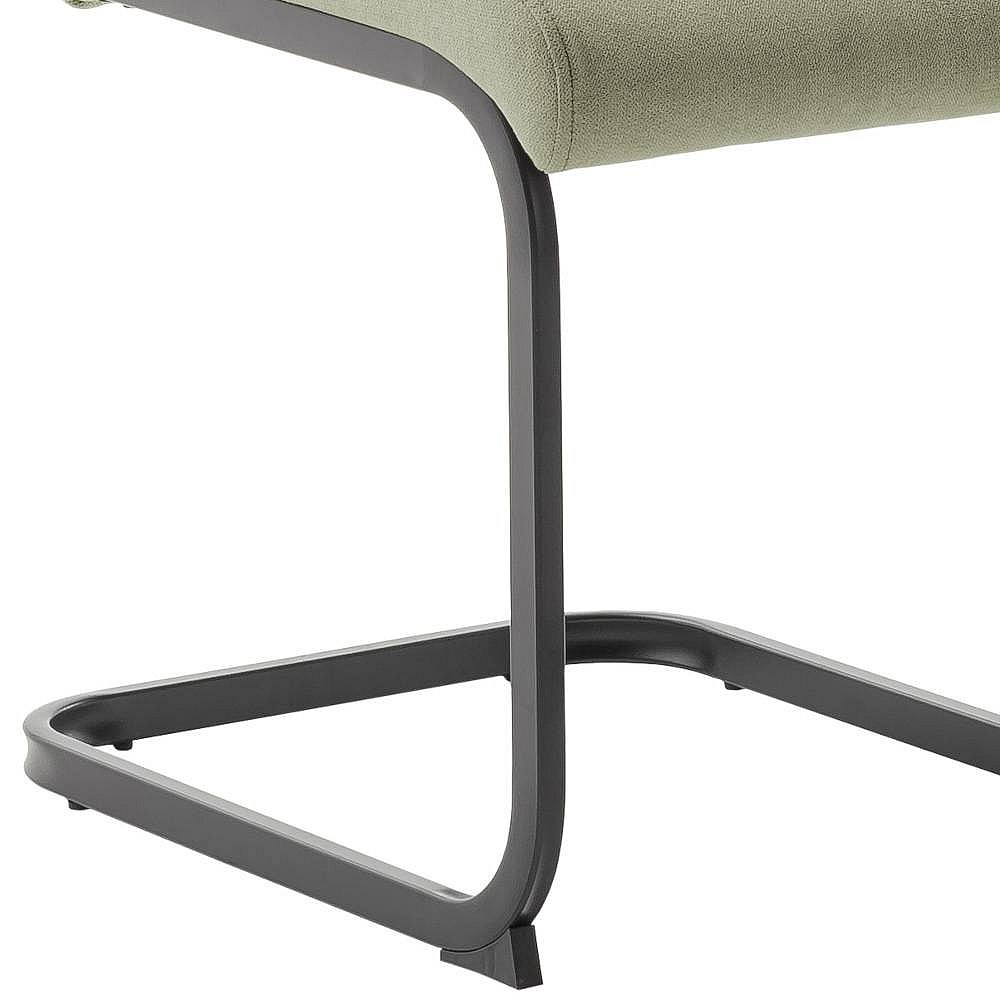 Freischwinger Stuhl Essstuhl in Oliv Gr�n aus Webstoff (4er Set)