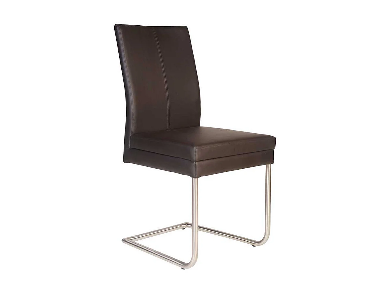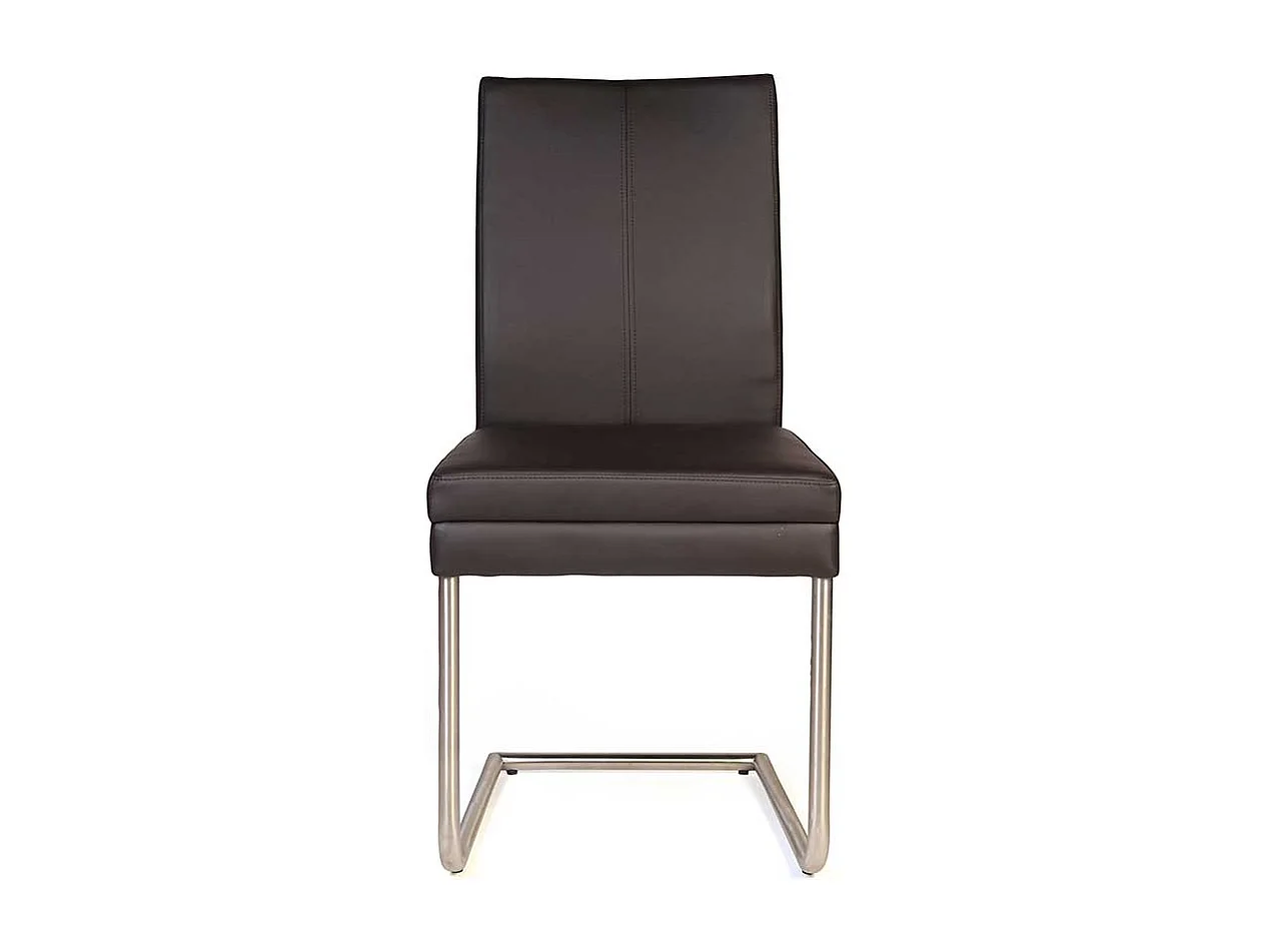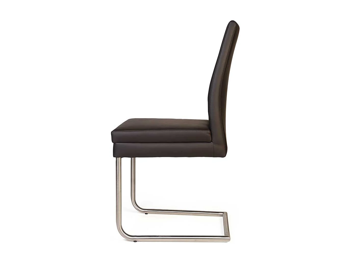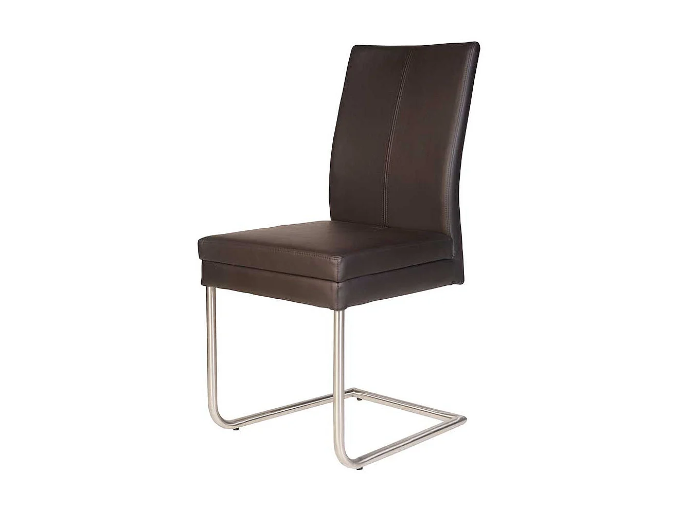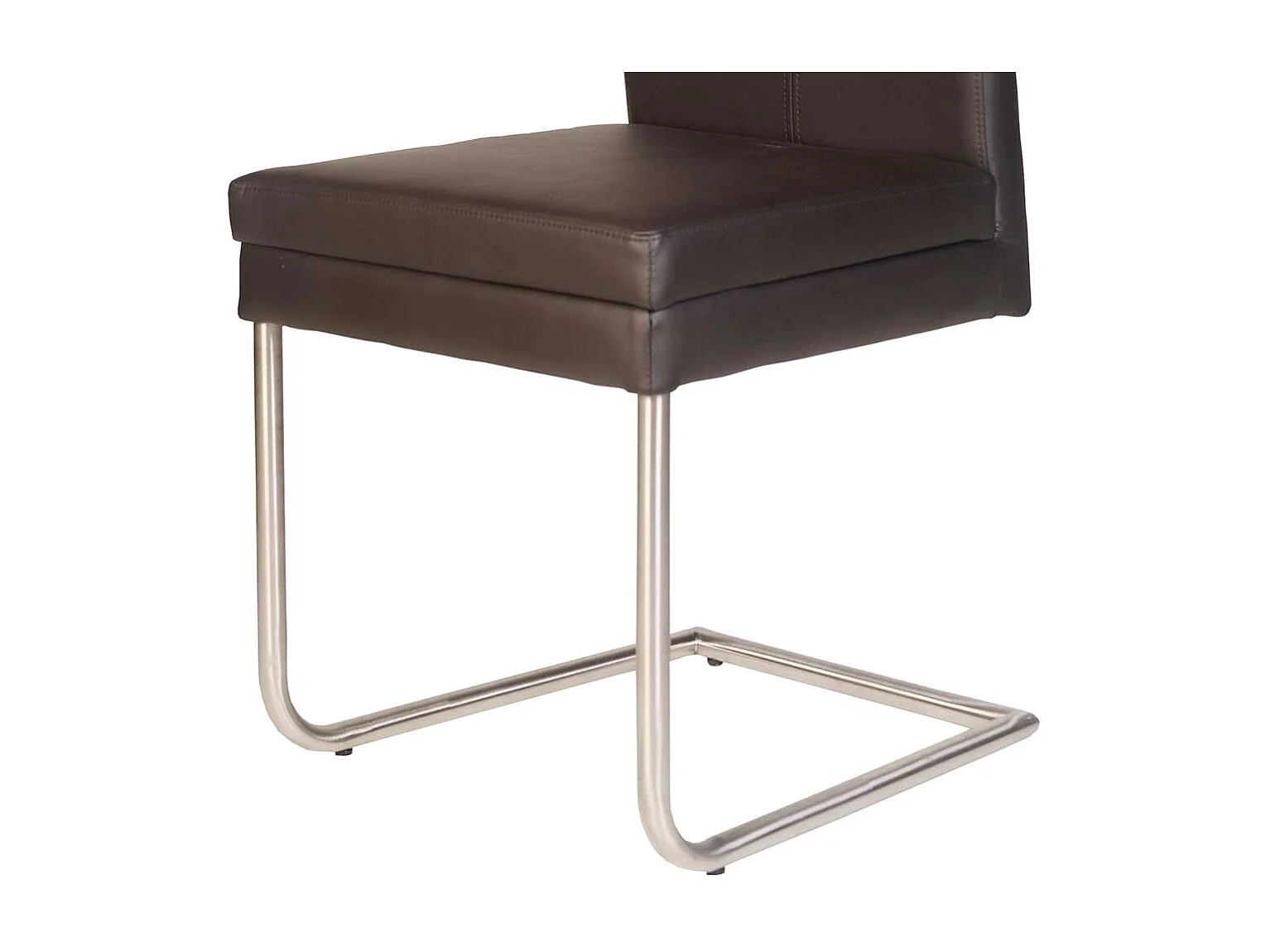 Freischwingerstühle in Dunkelbraun Kunstleder Edelstahl (2er Set)