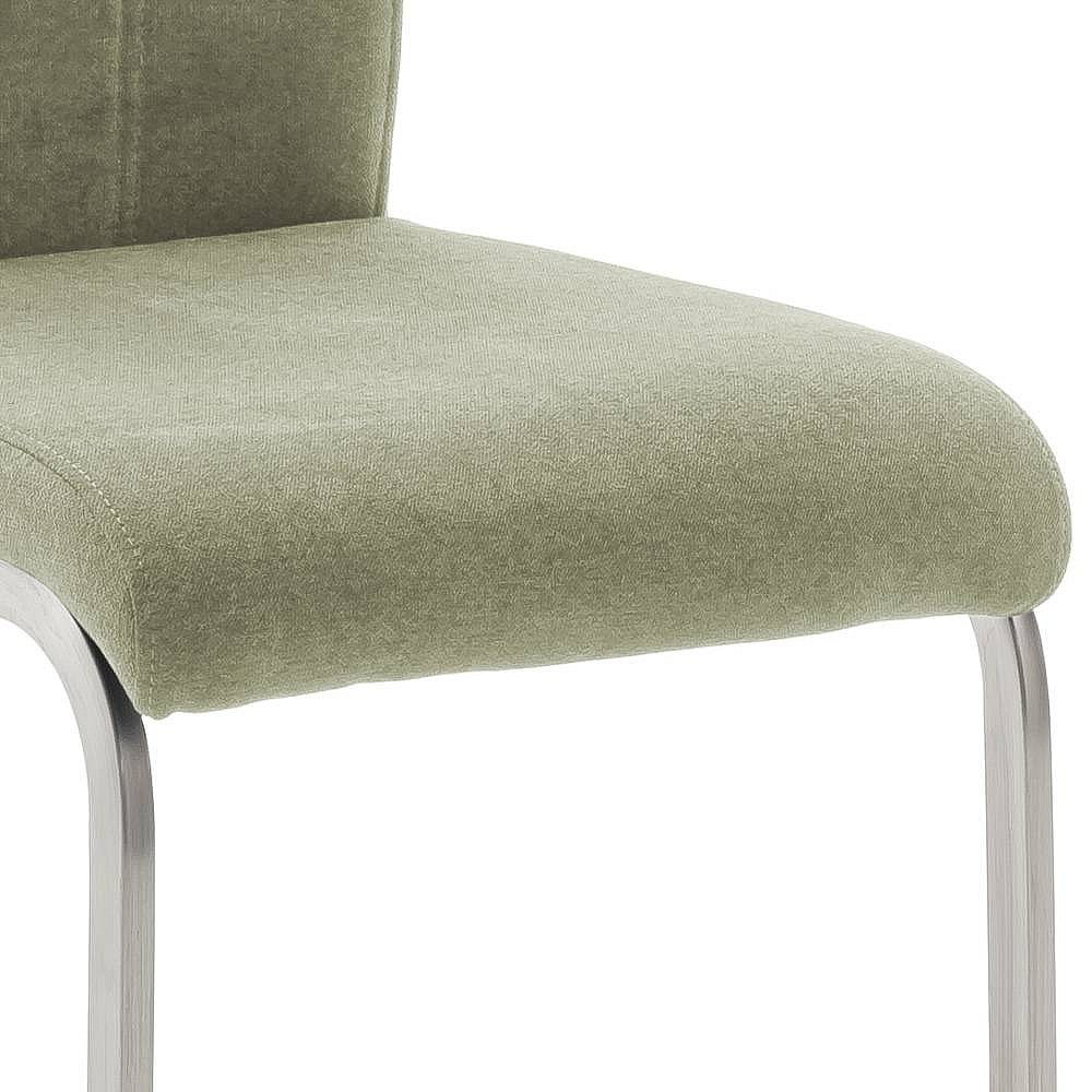 Freischwingerstuhl Polsterstuhl in Oliv Gr�n mit Gestell aus Metall (4er Set)