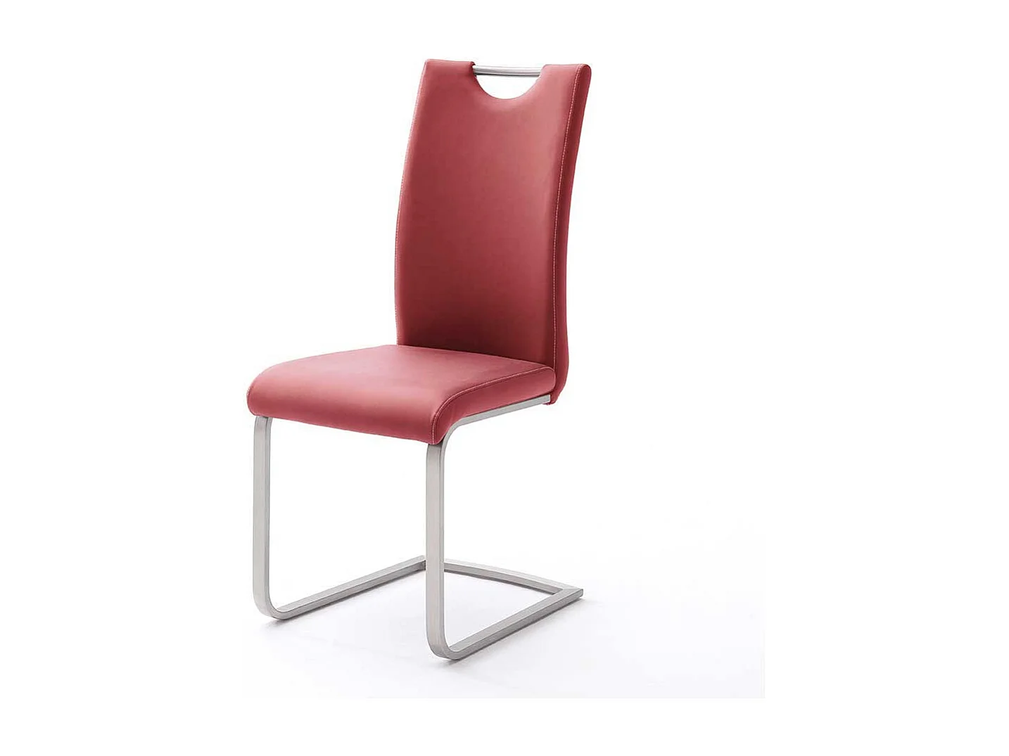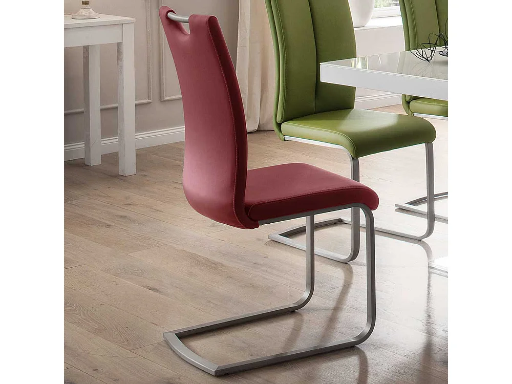 Freischwingerstuhl Set in Rot Kunstleder Edelstahl (4er Set)