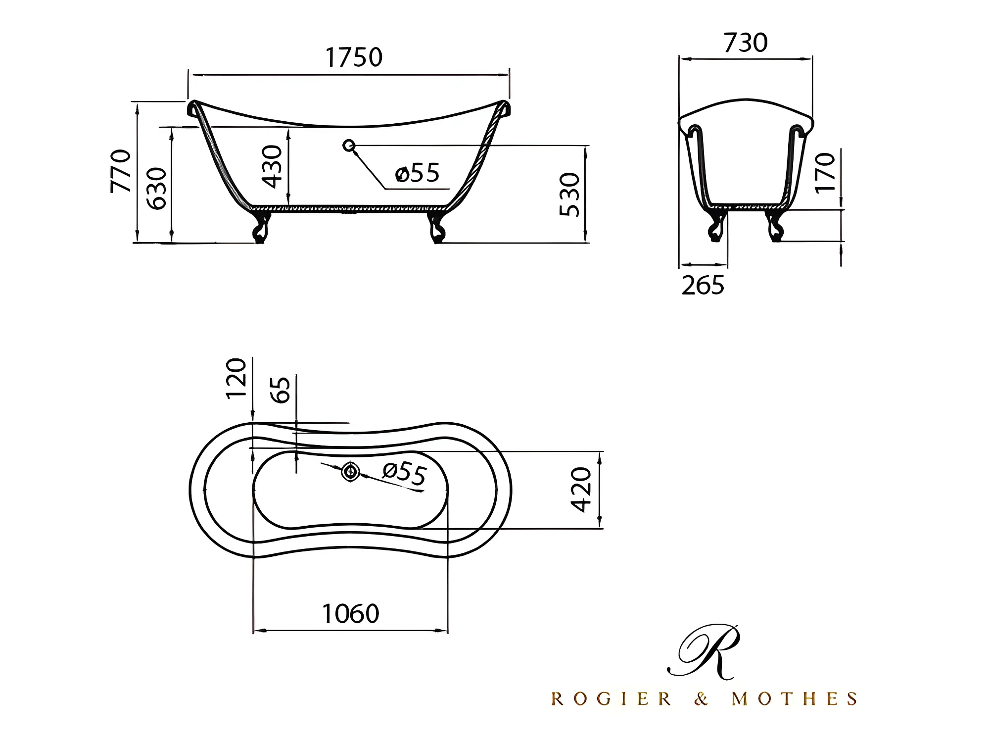 Freistehende Badewanne mit Füßen DARLINGTON SCHWARZ Adlerfüße ALTBRONZE 175 cm