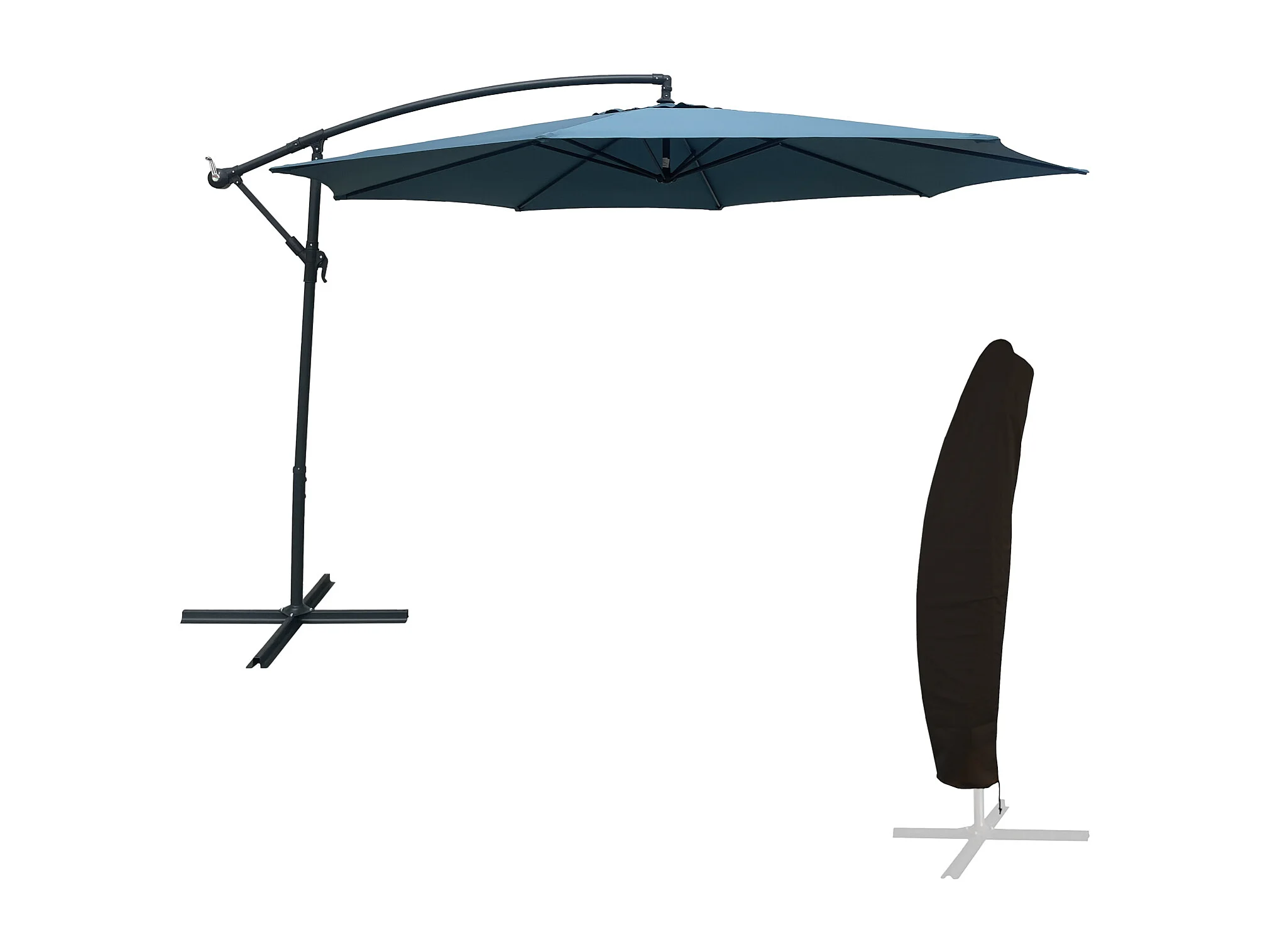 Freistehender Sonnenschirm OAHU rund 3,50m Durchmesser blau grau + Hülle