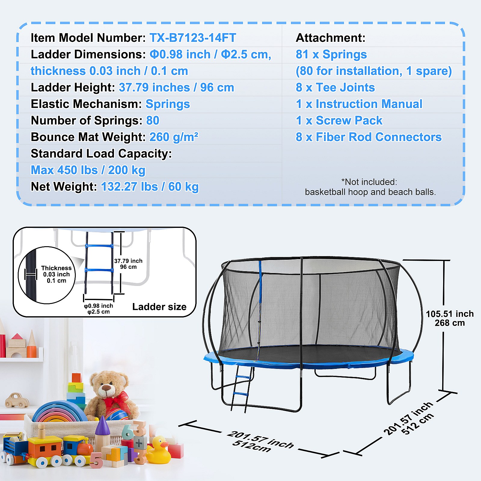 Freizeit-Trampolin Außen SucceBuy, 426,7 cm für Kinder mit Sicherheitsnetz, Langlebig und Biegesteif