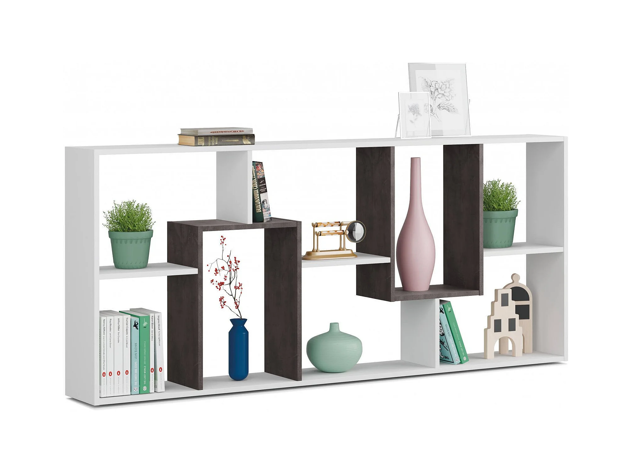 Fremont Bücherregal, Bücherregal mit mehreren Positionen und 8 Fächern, Büroregal, Raumteilerregal, 80x25h180 cm, Weiß und Oxid