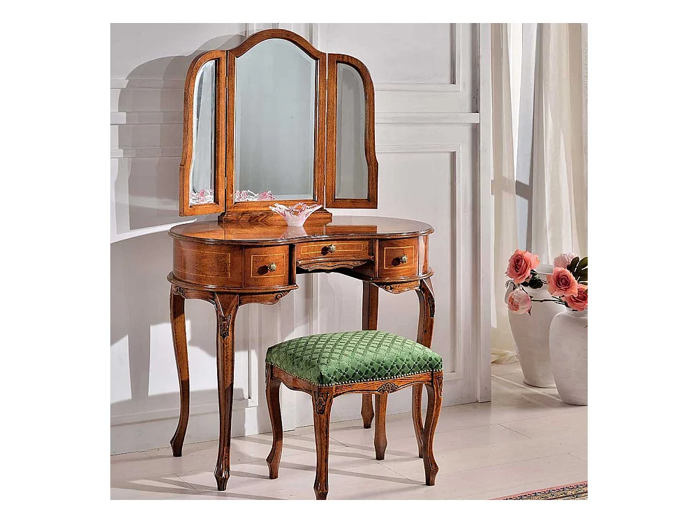 Frisiertisch mit Hocker im Barock Style Nussbaum furniert (zweiteilig)