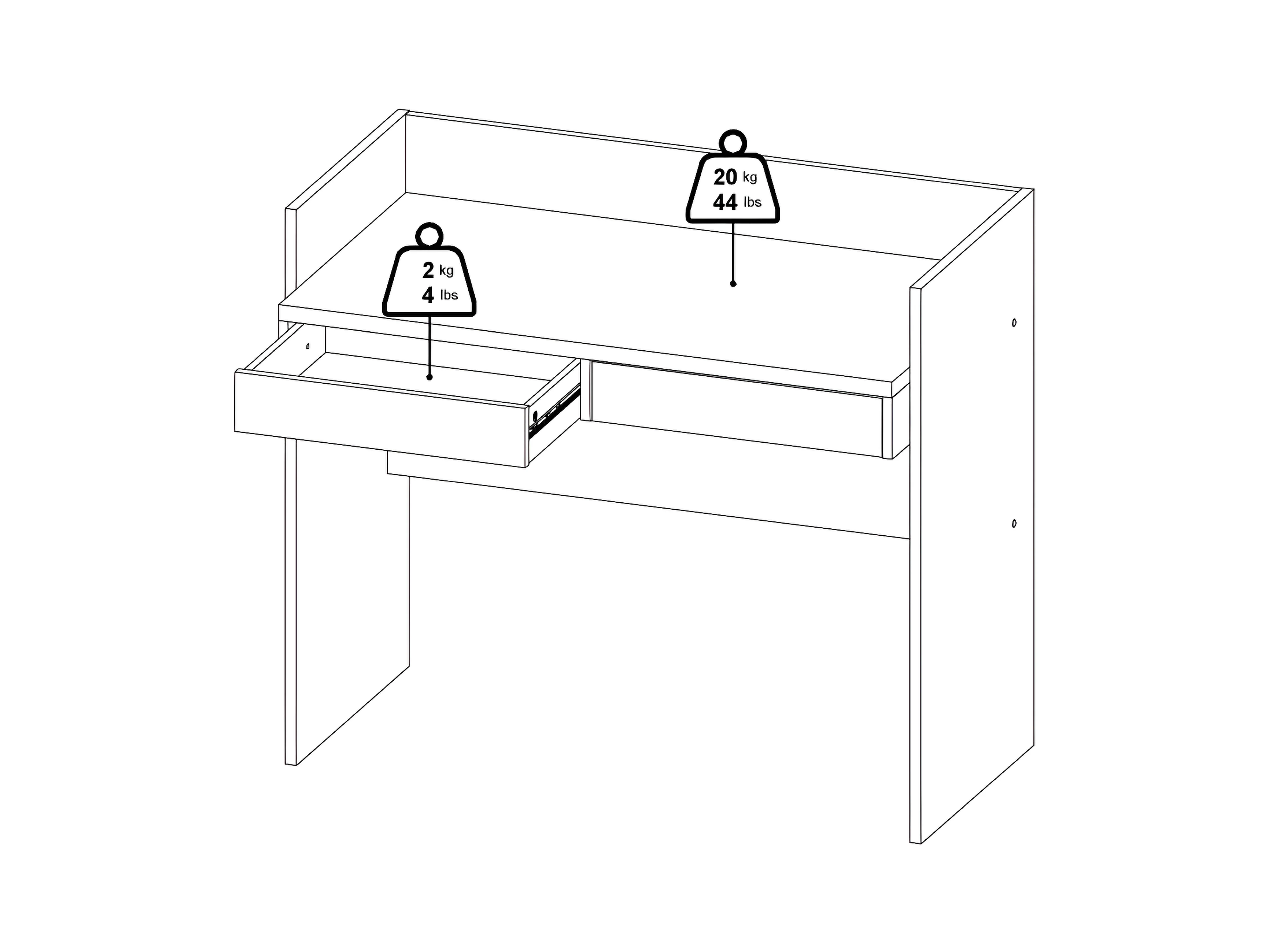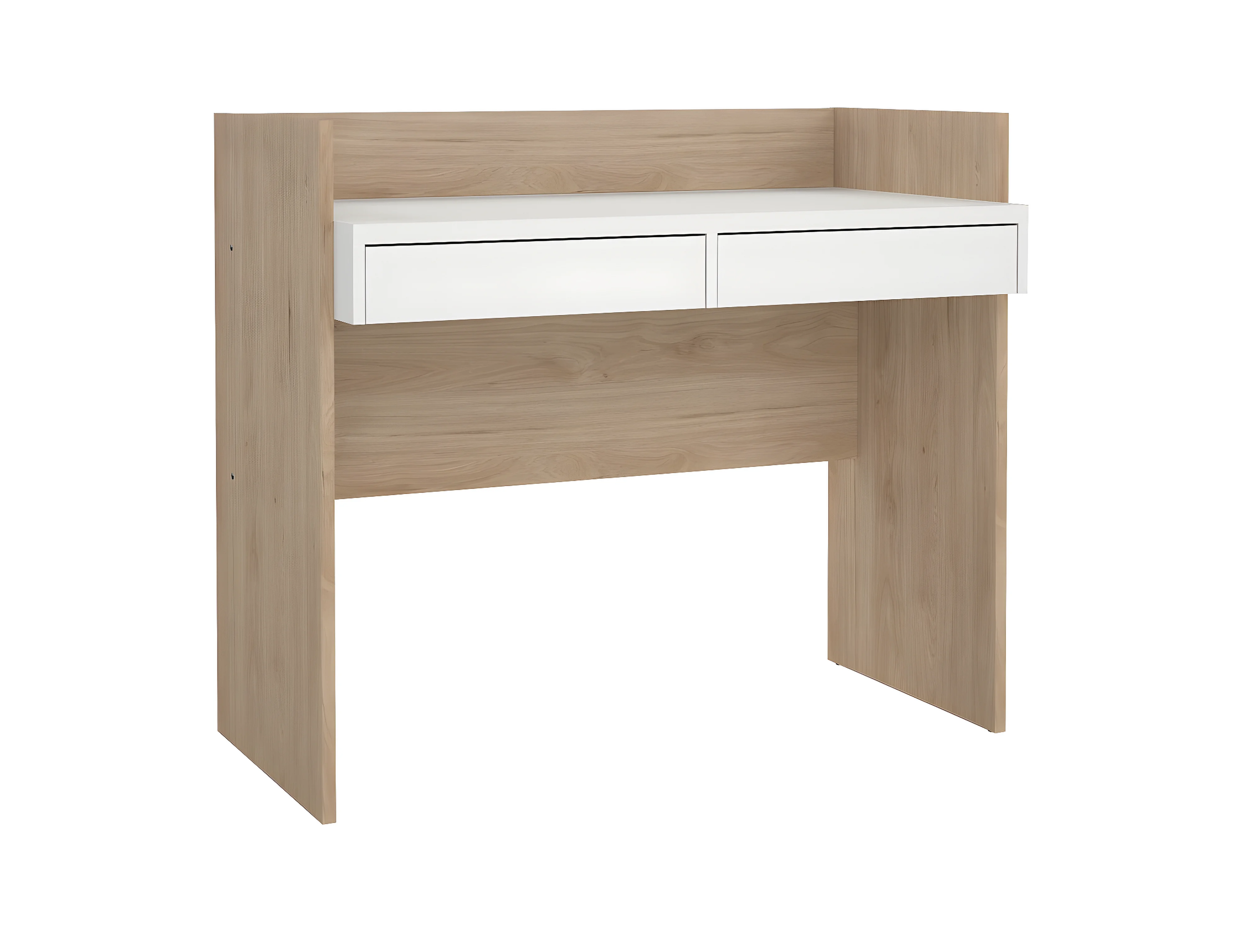 FunctionPlus Schreibtisch 2 Schubladen Nussbaum dekor weiß.