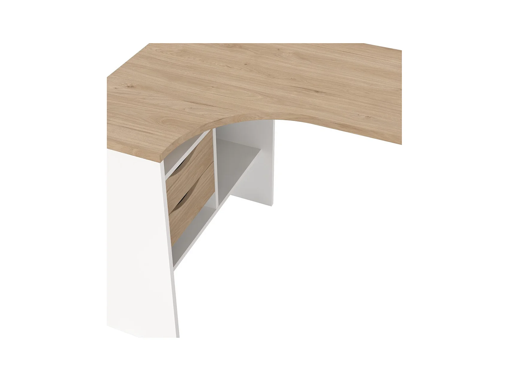 FunctionPlus Schreibtisch Ecke 3 Ablagen 2 Schubladen Nussbaum dekor weiß.