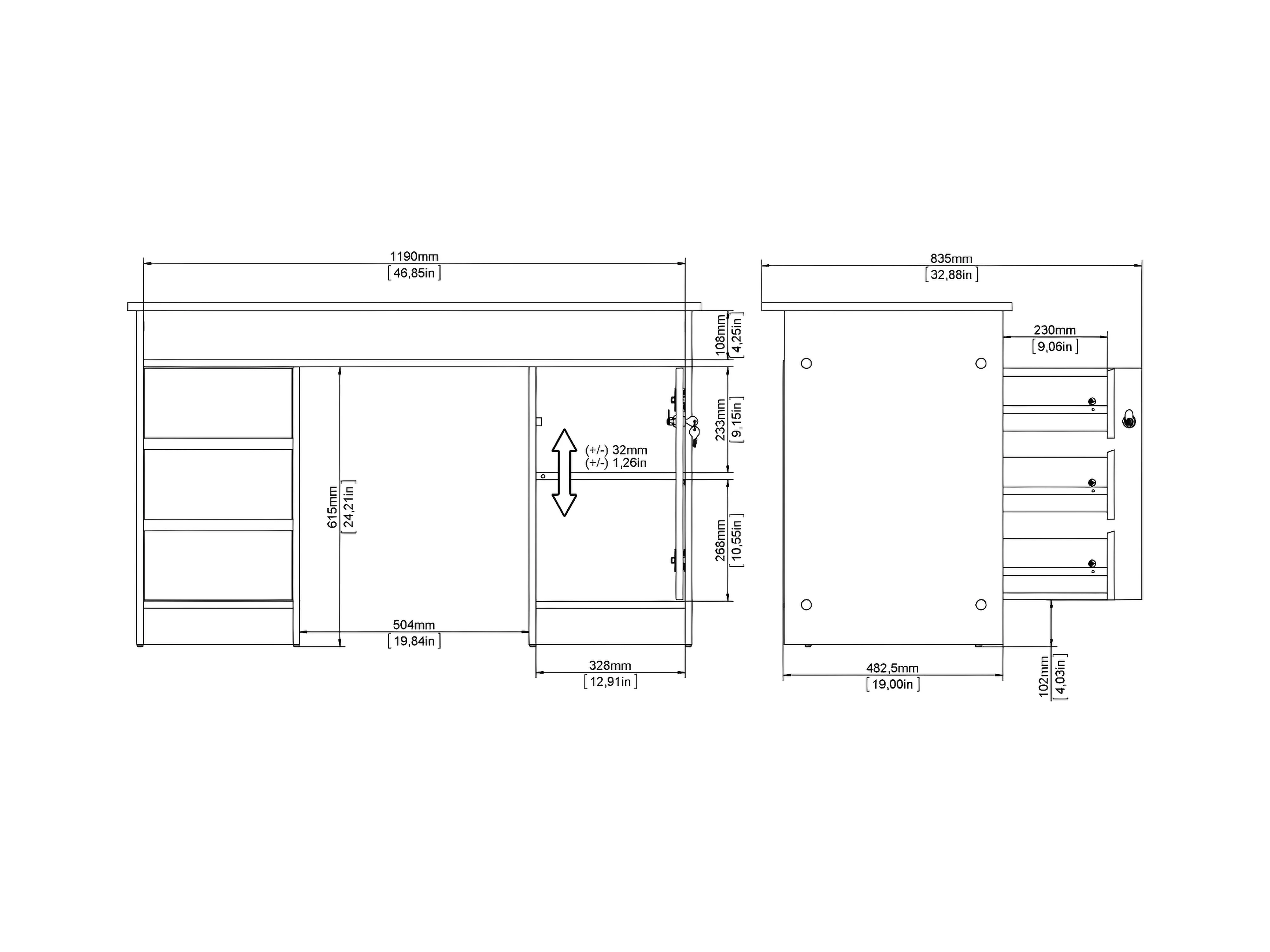 FunctionPlus Schreibtisch mit Schloss 1 Tür 3 Schubladen Eiche dekor schwarz.
