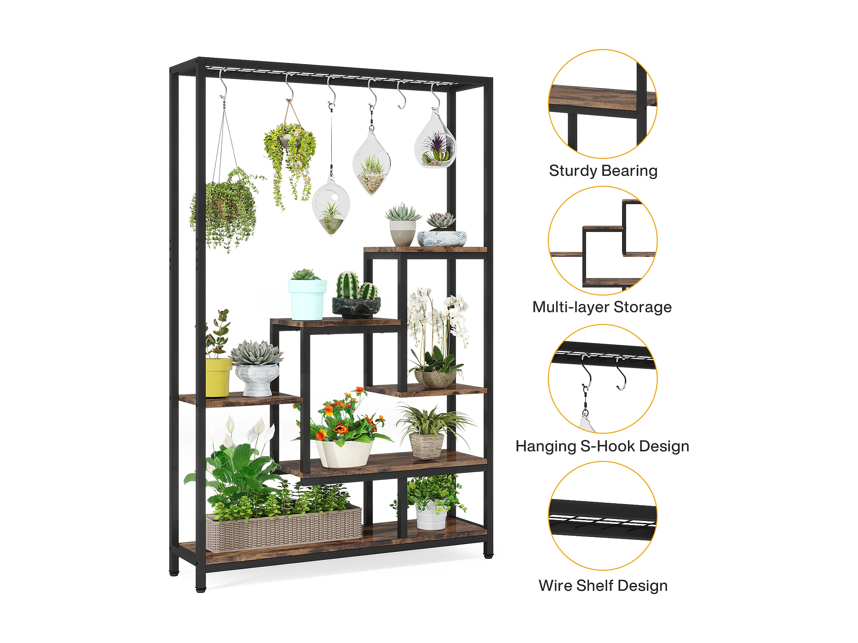 Fünfstufige Stütze für Zimmerpflanzen - Großer Metallregal mit einer Höhe von 180,1 cm und 10 S-Haken zur Aufhängung
