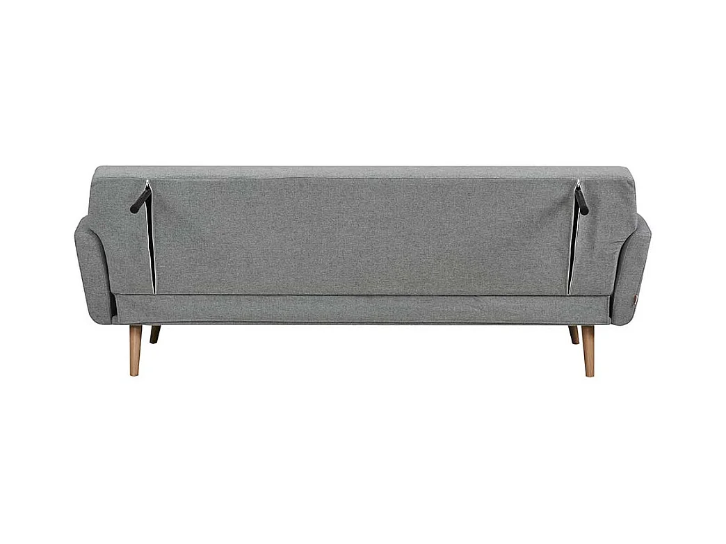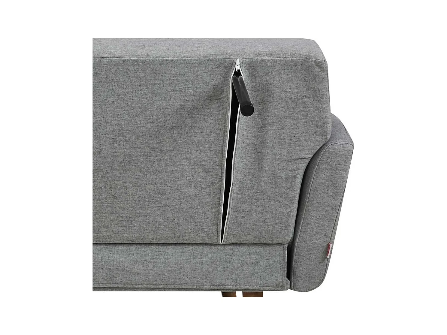 Funktions Sofa in Hellgrau und Holz Naturfarben Rücken Klappmechanik