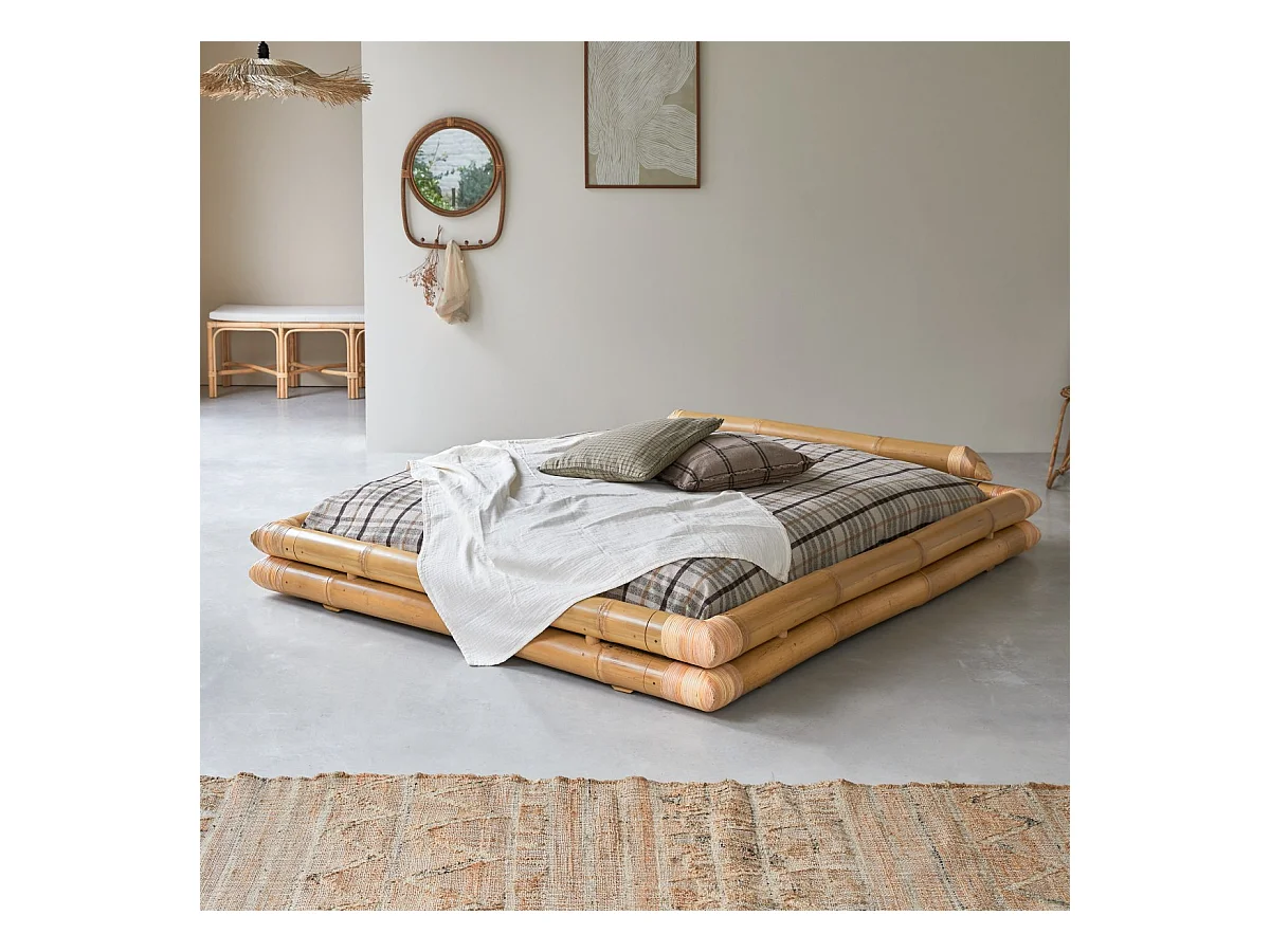 Futonbett aus Bambus für 160x200 Matratzen Schlafzimmer Bett 2 Personen