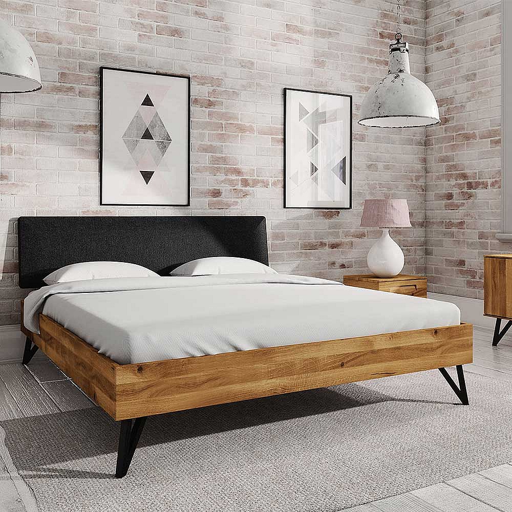 Futonbett aus Wildeiche Massivholz und Stahl gepolstertem Kopfteil