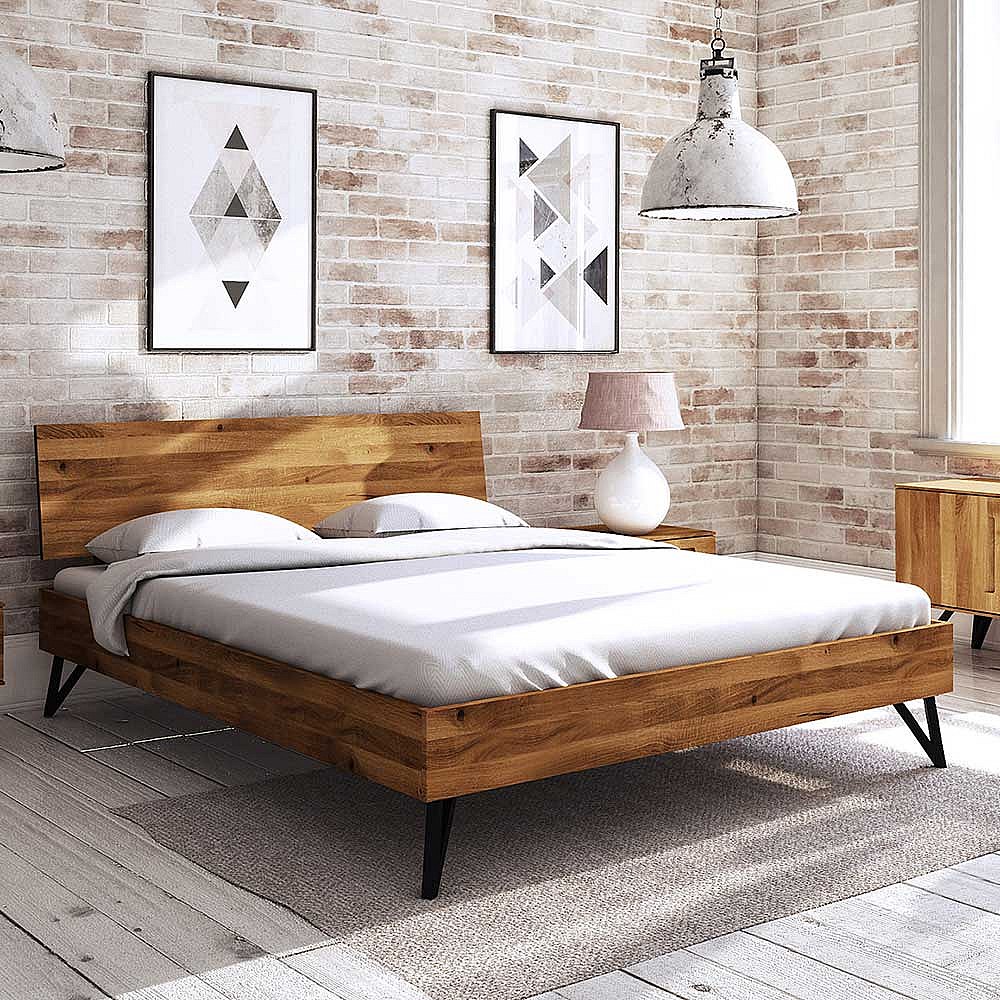 Futonbett aus Wildeiche Massivholz und Stahl Industriedesign