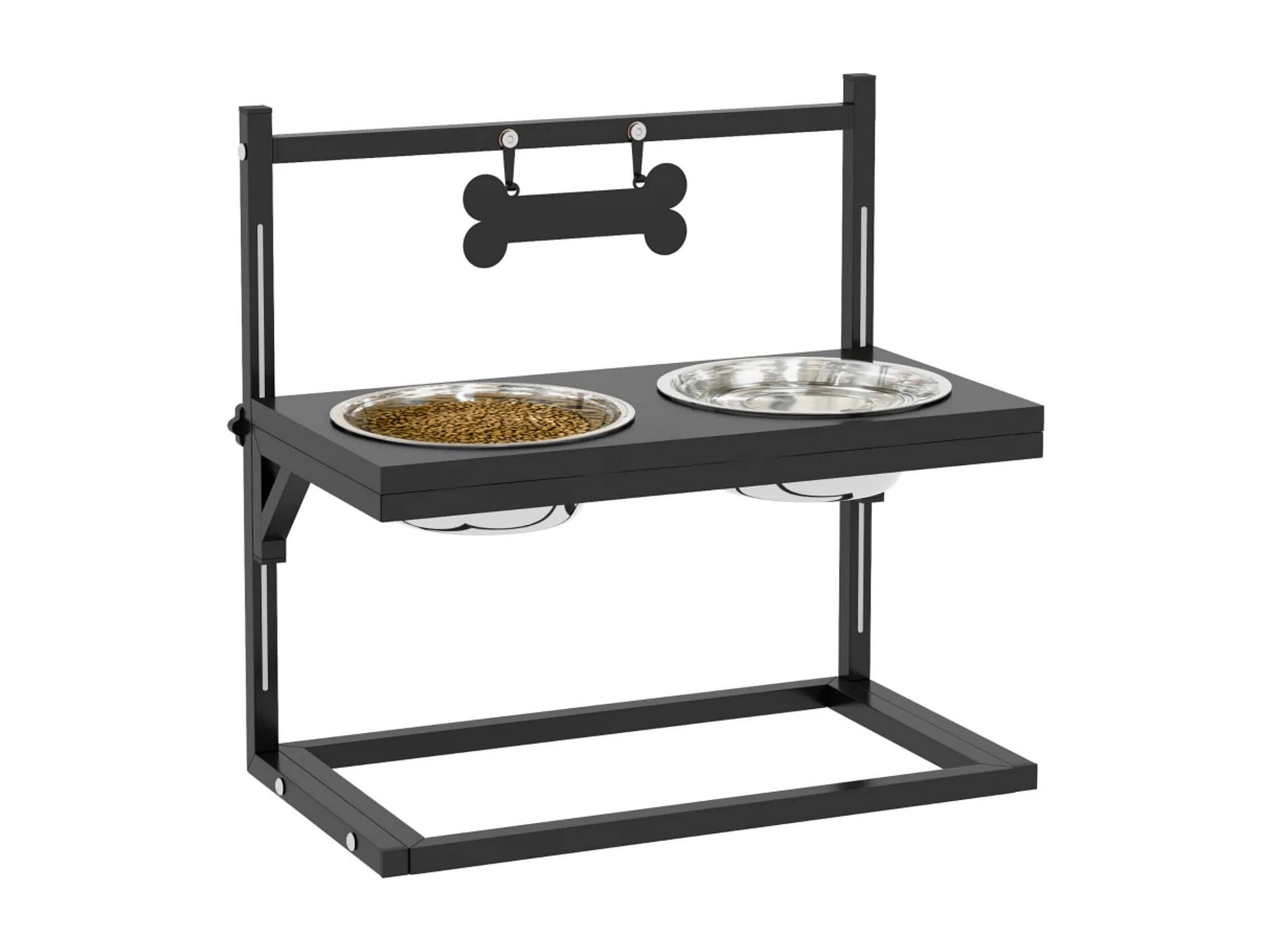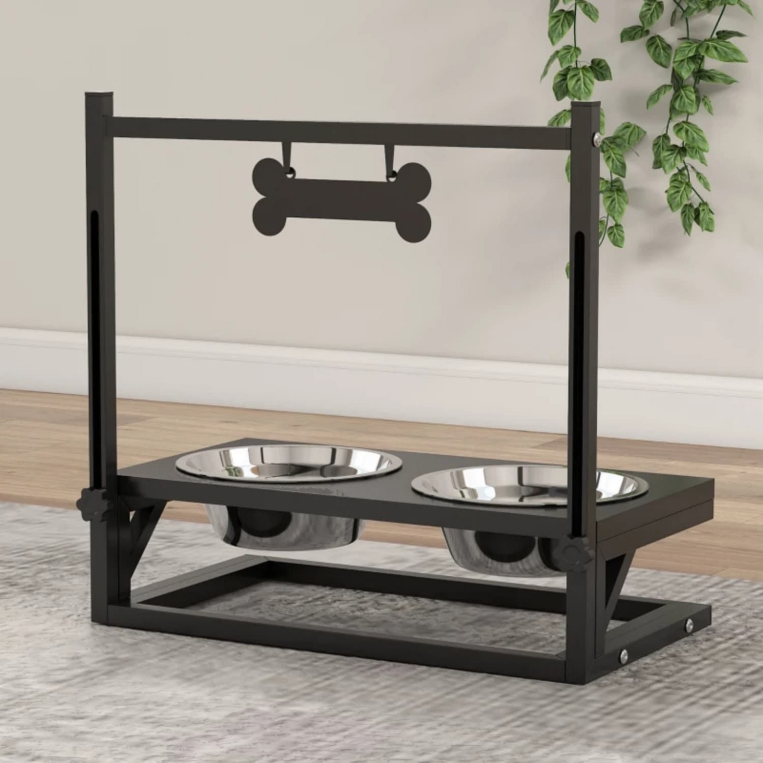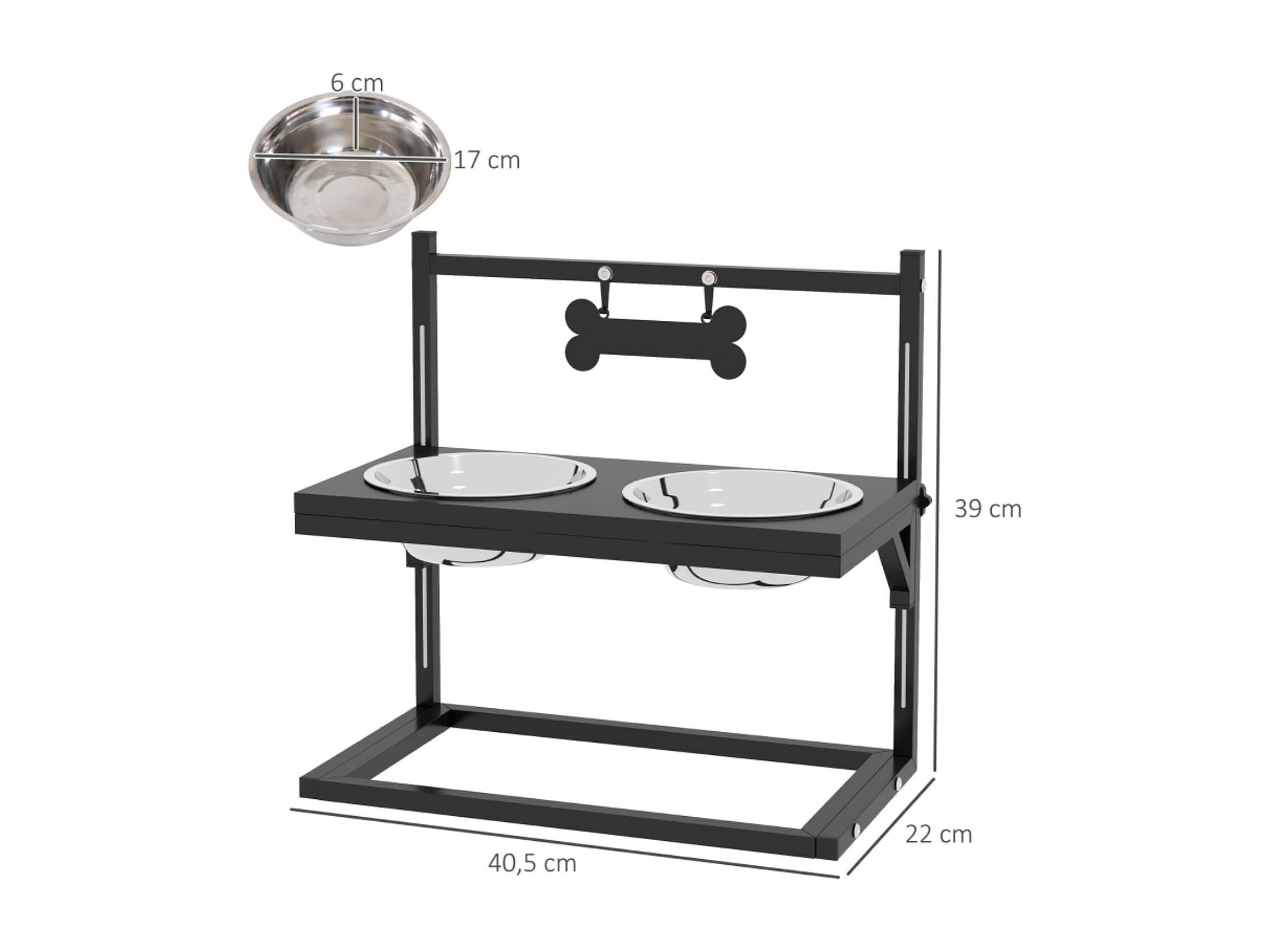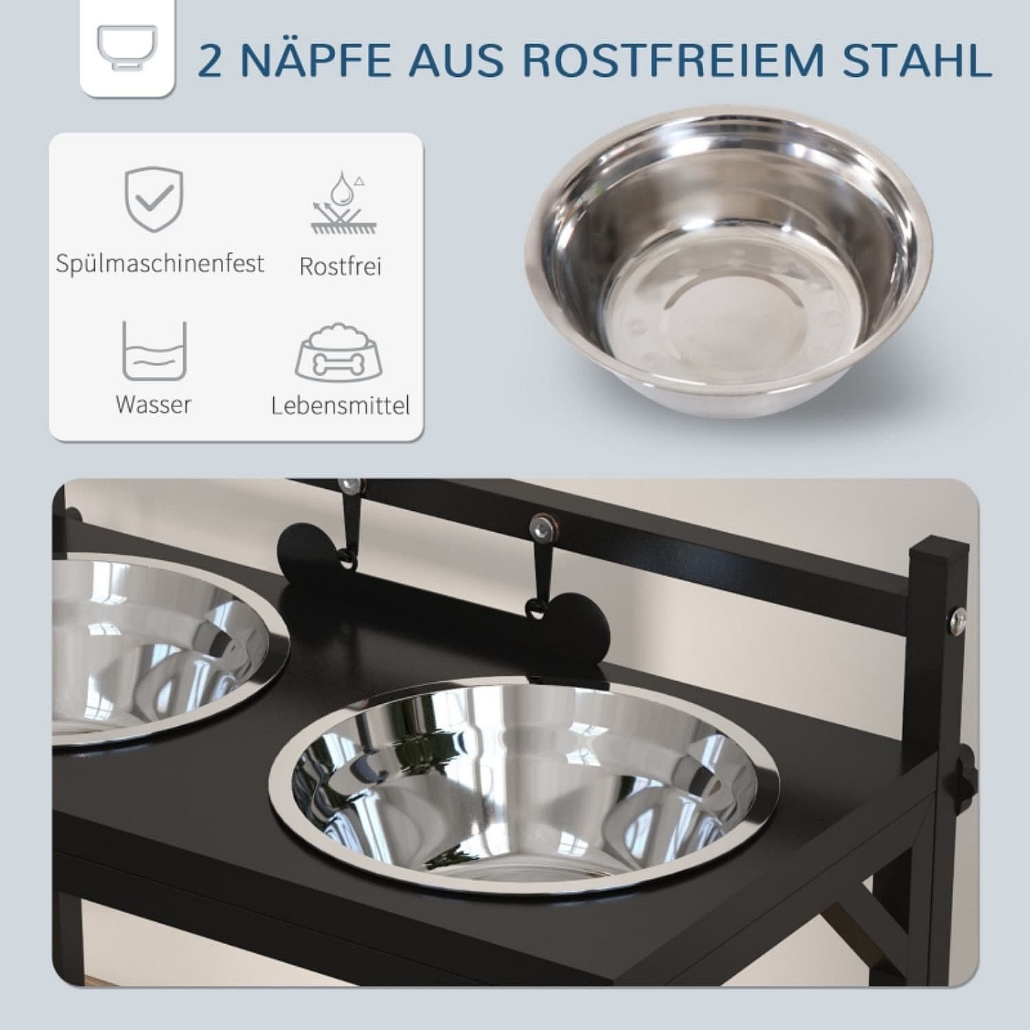 Futterstation Erhöhte Futternäpfe Fressnäpfe, Futternäpfe aus Edelstahl, 40,5 x 22 x 39 cm, Schwarz + Silber